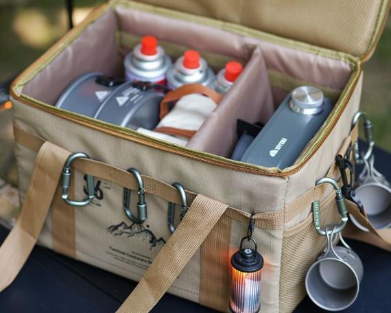 強化フックポイントでテントなどに吊り下げ可能。着脱式コンパートメントで収納レイアウトも自由自在(^_-)-☆