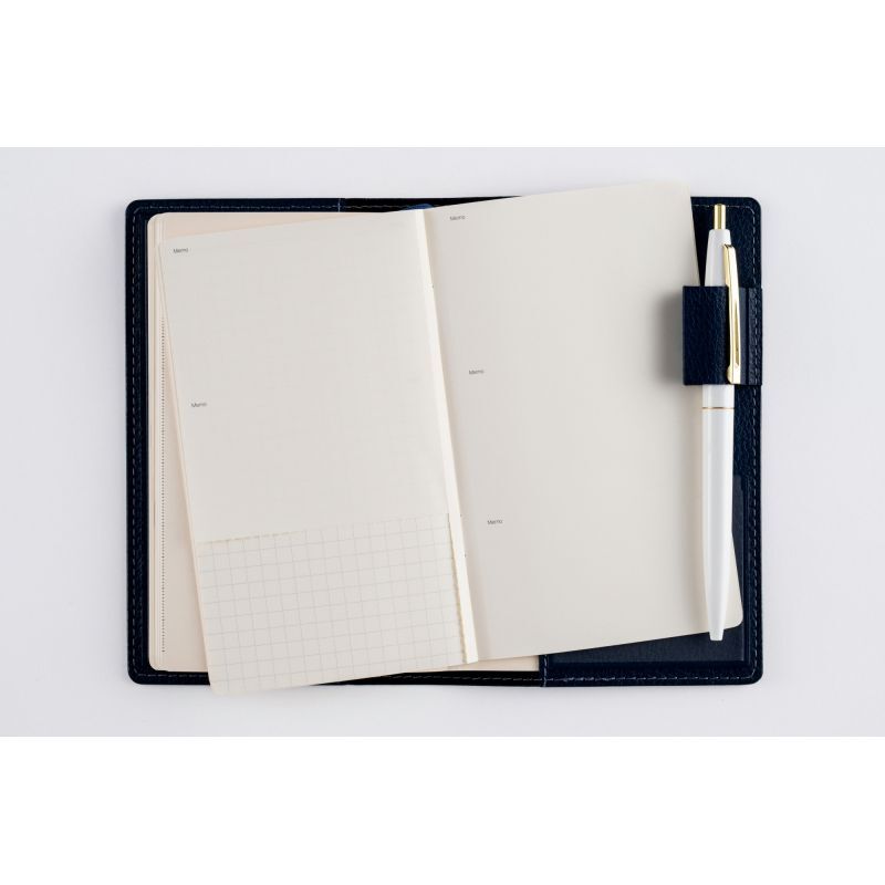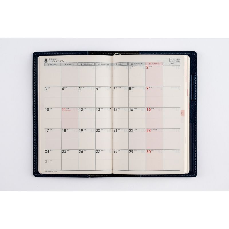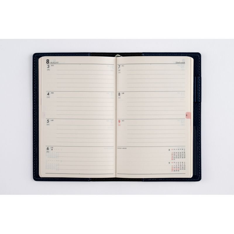 カバーは、高級感がある皮革調。カバーのステッチ糸も、カバー色に合わせて選び抜いています。本文は、目にやさしいクリーム色の用紙を使用しています。細部にまでこだわり抜いた手帳は、毎日使うのがきっと楽しくなるはずです。