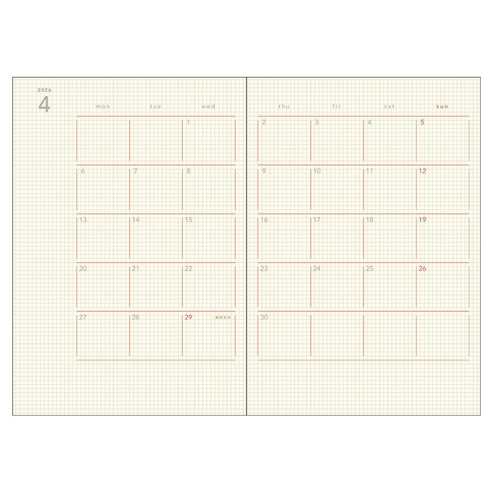 内容:年間カレンダー(2年分)・月間予定表・2.5mm方眼メモ・パーソナル