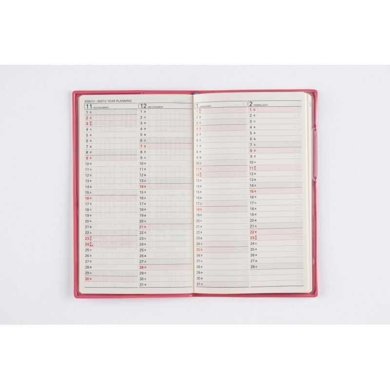 「薄さ」と「軽さ」が人気の土日均等タイプ。1冊目にはもちろん、趣味用のサブ手帳としてもオススメ。カレンダー感覚で見やすい日曜始まり。