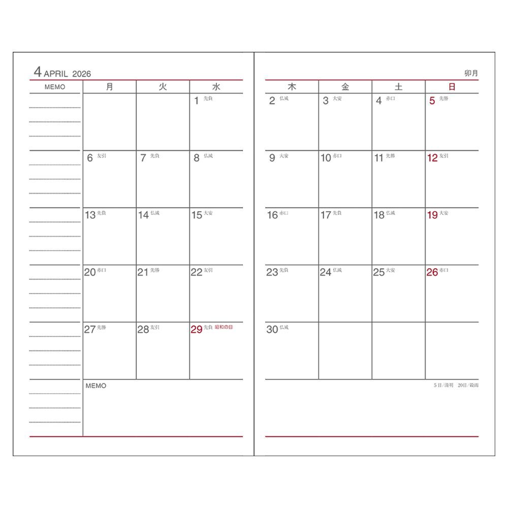 アポイント/Appoint E1343 は、1ヶ月の予定を曜日ごとに把握しやすい、カレンダーと同じ感覚で使える月間予定表です。