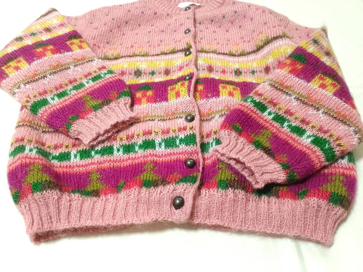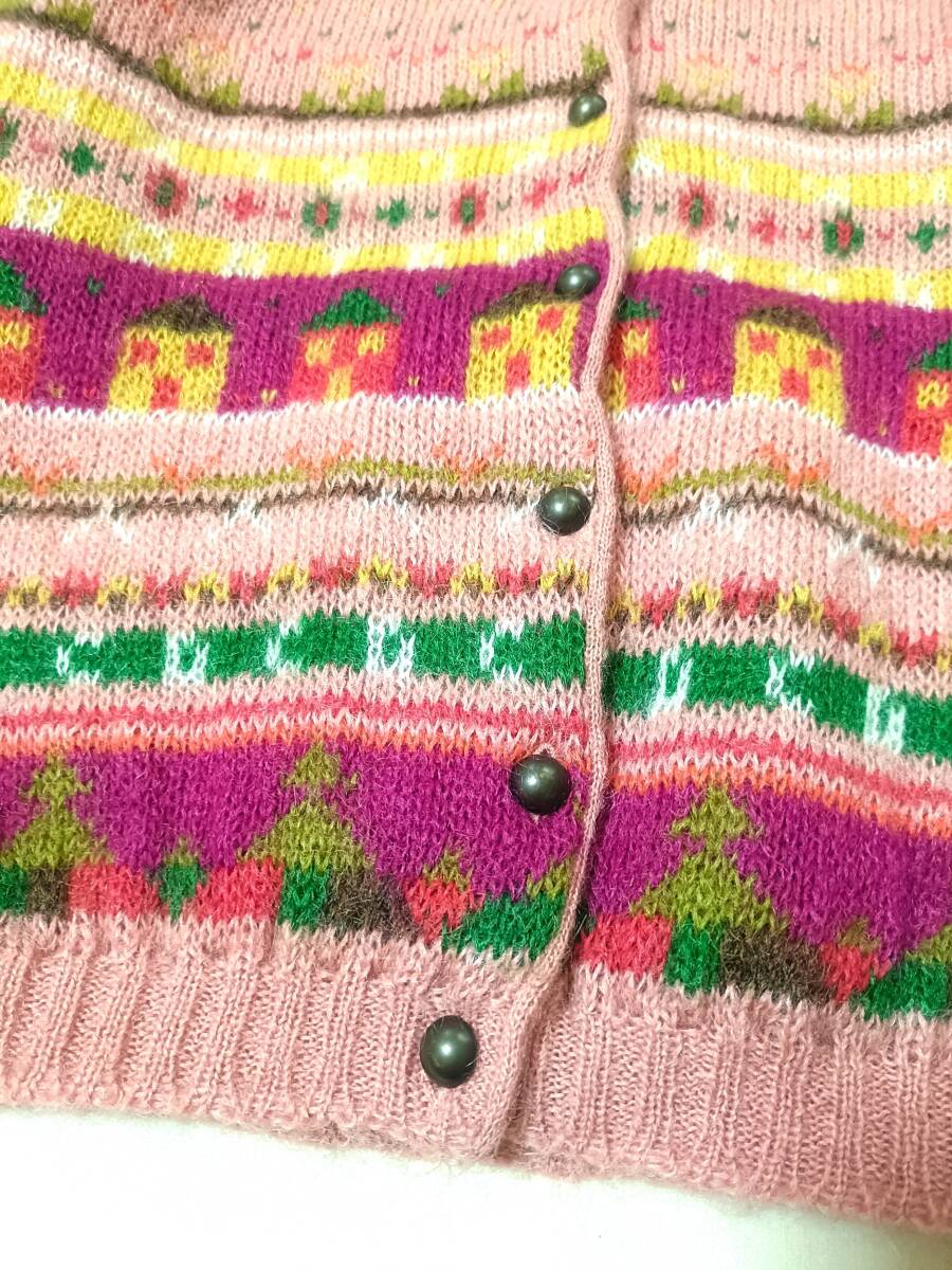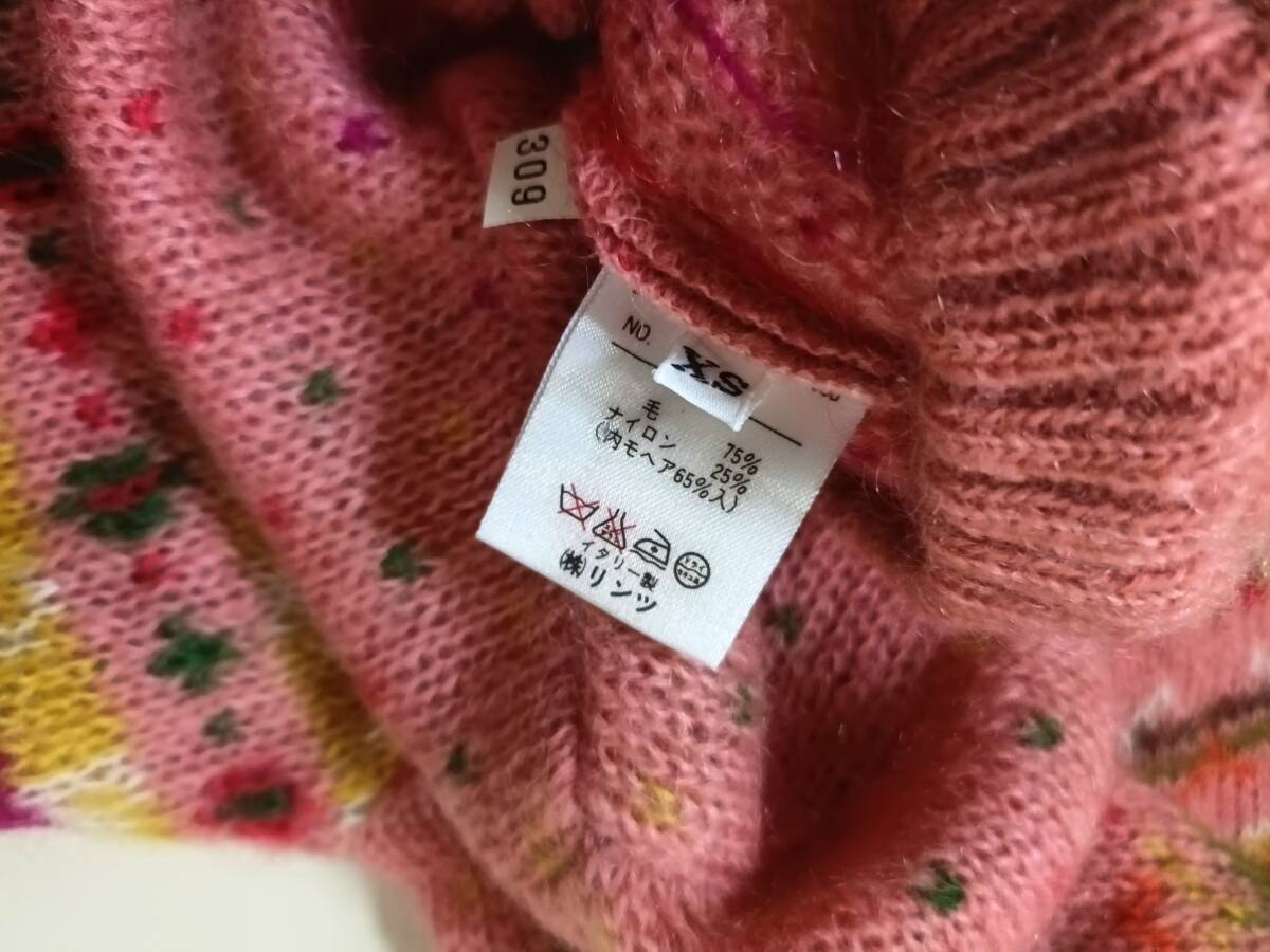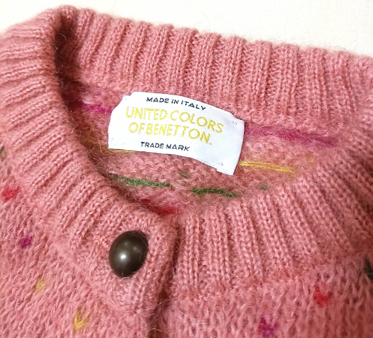 UNITED COLORS OF BENETTON ベネトン ふわふわ モヘア イタリア製 長袖 カーディガン セーター ニット ウール XS 総柄 リンツ 当時物 7893
