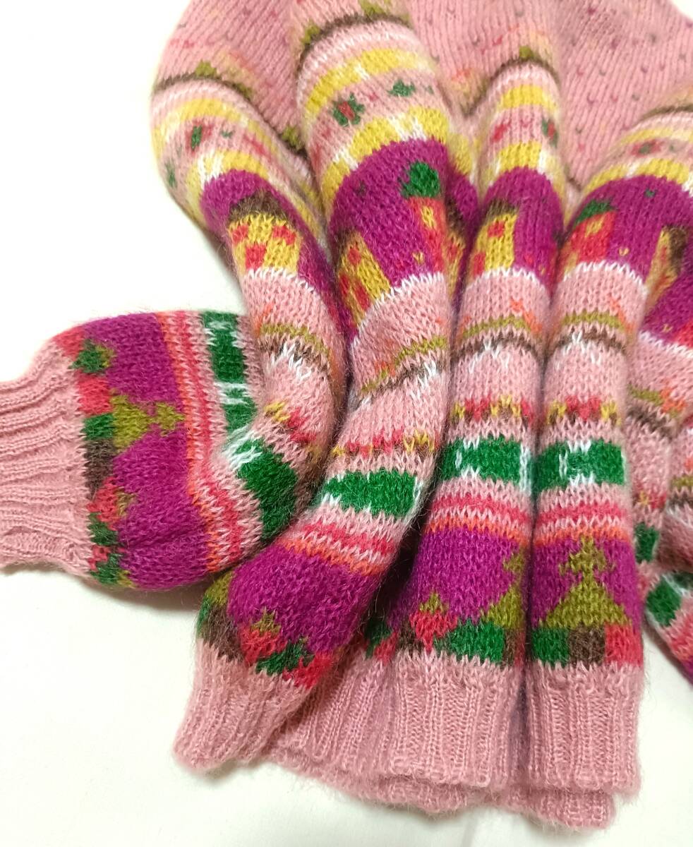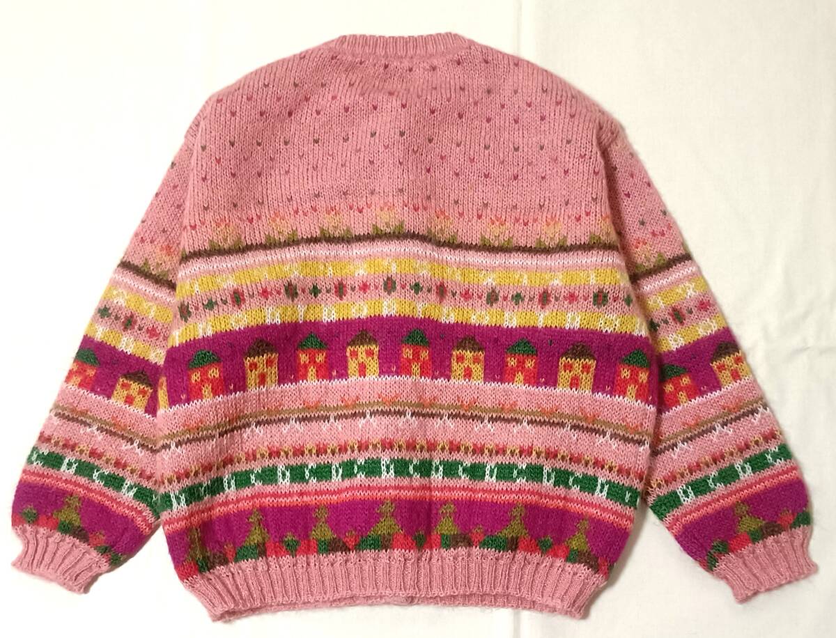 ・色 ピンク系総柄(家・木など)。ピンク・赤・黄・緑・茶・紫・白。