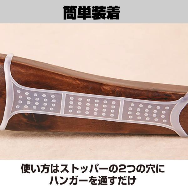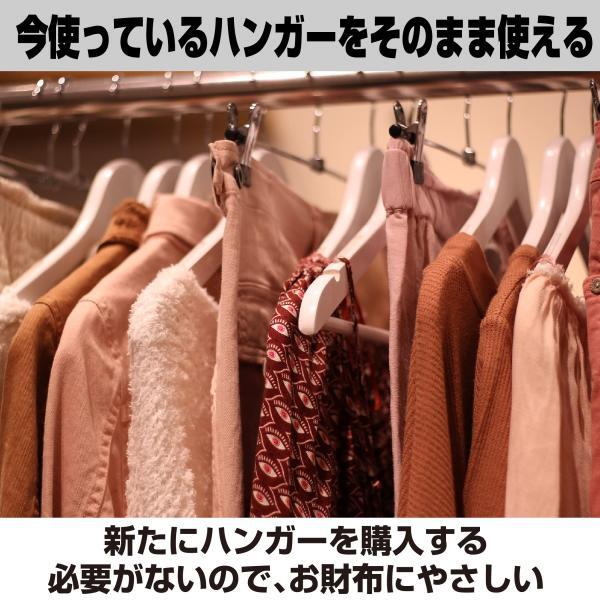 襟ぐりの広いTシャツやセーター、ツルツルした素材のシャツなどは、ハンガーからするっと滑り落ちてしまうことがあります。こちらの商品は、そんな衣類の滑り落ちを防いでくれる後付けタイプのハンガーストッパーです。
