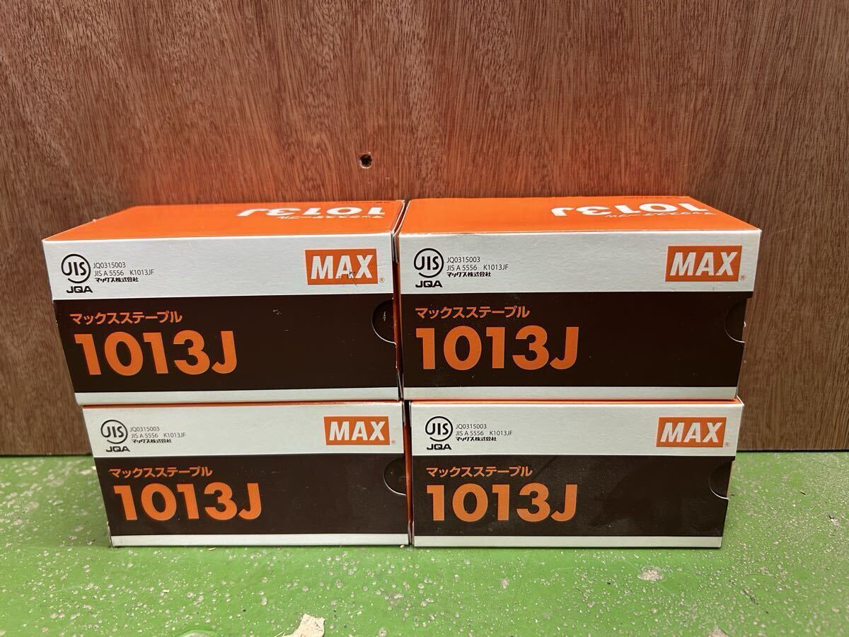 MAX製の1013Jステープル 1箱5000本入り 肩幅10mm、足長13mmのステープルです。 未使用品ですが、長期自宅保管のため、外箱に経年劣化による汚れや傷みがあります。中身は未使用です。 【ブランド】MAX 【型番】1013J 【数量】4箱 【内容量】5000pcs/箱 【サイズ】肩幅10mm 足長13mm