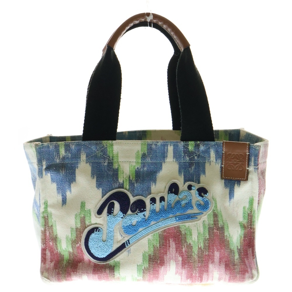 LOEWE ロエベ パウラズイビザ ビーチ カバス アナグラムロゴ レザーパッチ キャンバス ビーズ刺? トートバッグ ブルー/アイボリー