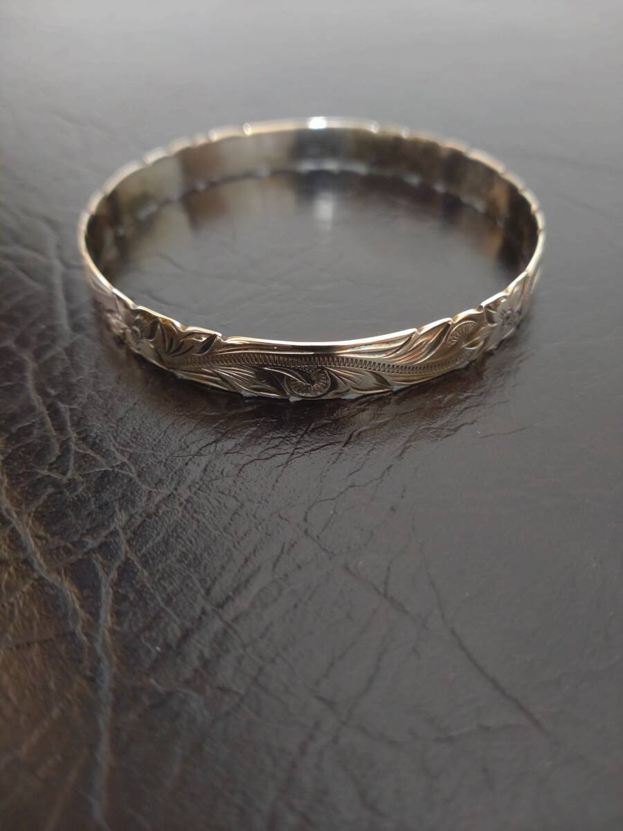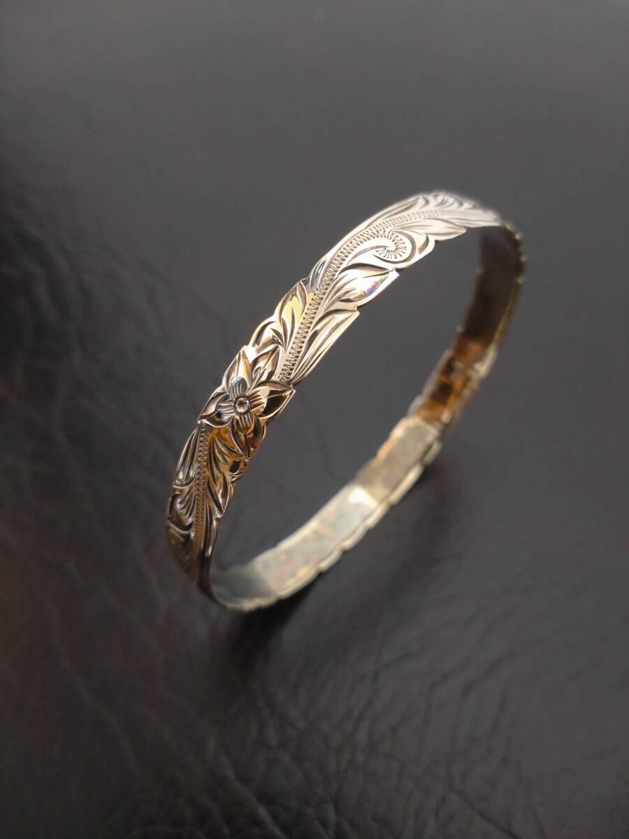 プルメリアと波のモチーフが刻されたシルバー925バングルです。
