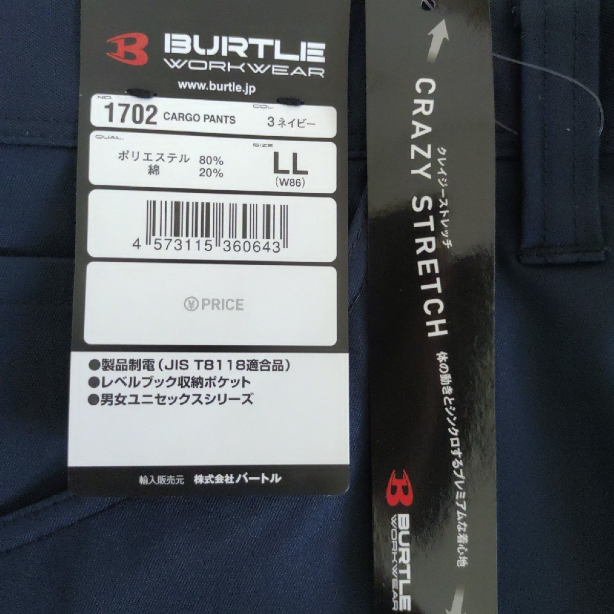 (^w^)b 未使用 タグ付 BURTLE バートル 1702 制電ケア ストレッチツイル カーゴパンツ 長ズボン ボトムス 作業 ワーク 現場 紺 LL O15161DD