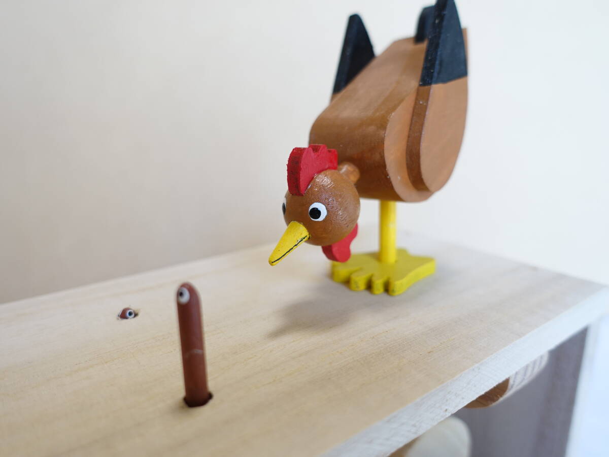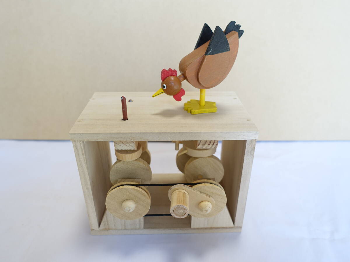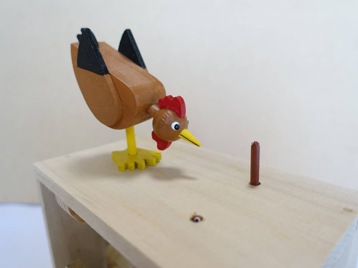 楽しいからくり 茶ニワトリと地虫(2) オートマタ からくり人形 木工細工 民芸品 郷土玩具 オマージュ品
