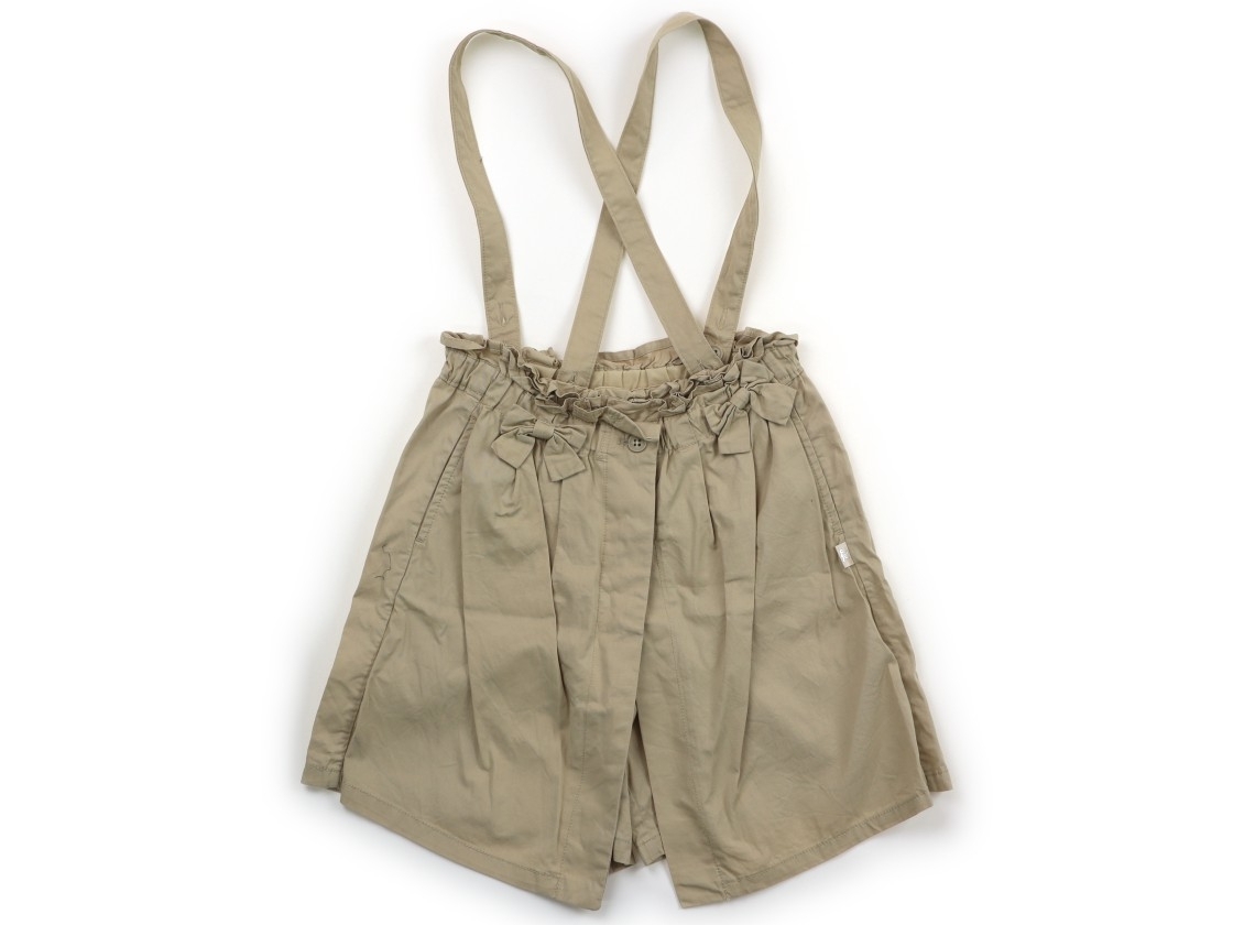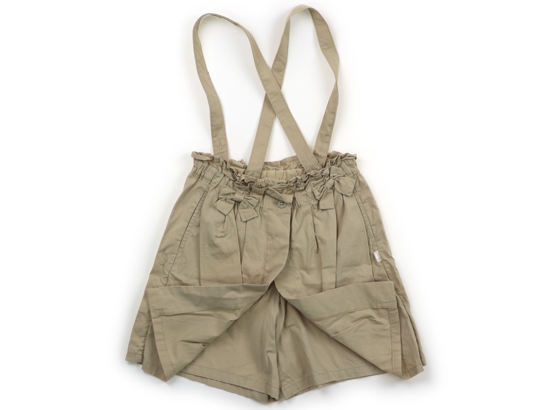 コットン。前身頃がラップスカートに見えるデザイン。ショルダーは取り外し可能です。右前身頃のリボンは少し緩いです。全体的に使用感がありますが、特に目立つ汚れはなくまだお使い頂けそうです。