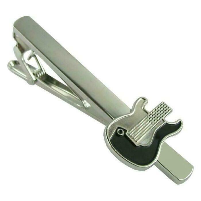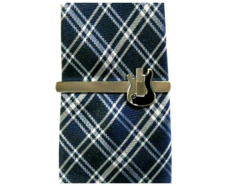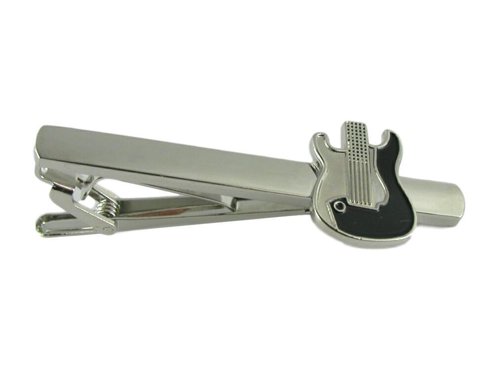 ★ネクタイピン ユニーク ギター エレキギター 楽器 音楽 シルバー&ブラック D 【送料無料】★