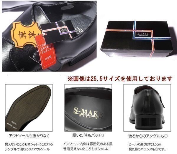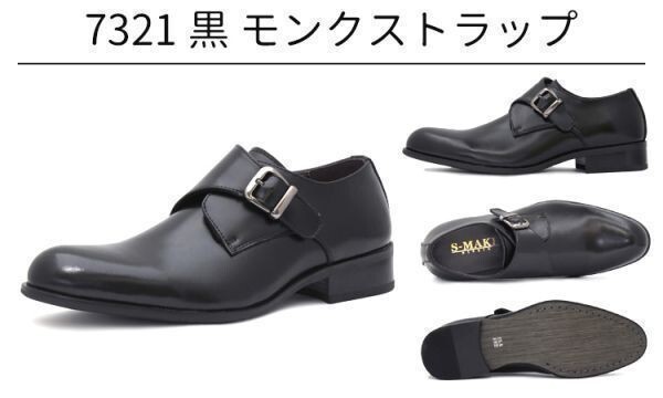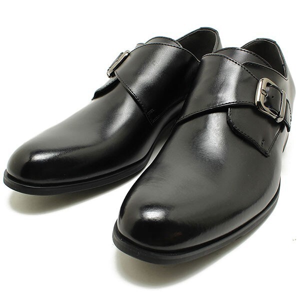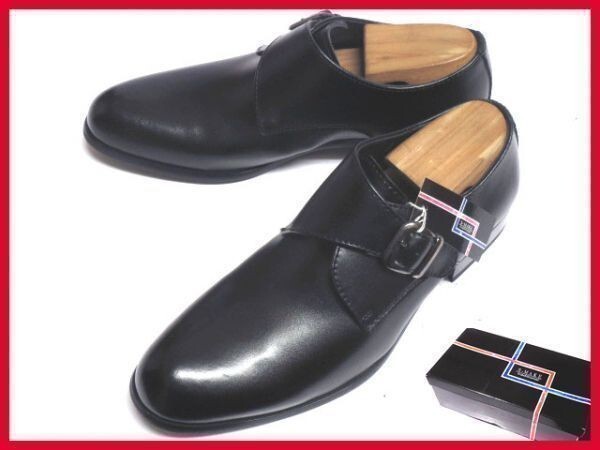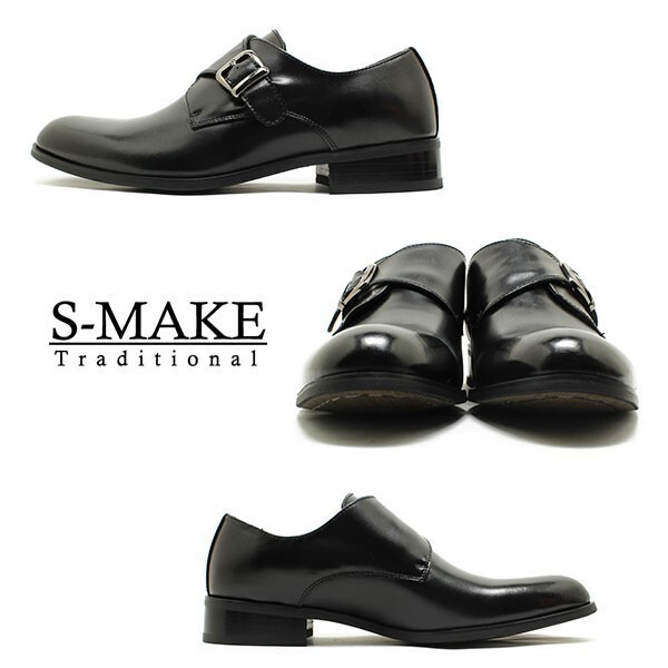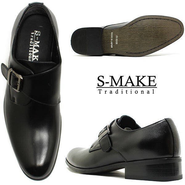 箱付き新品★日本製x本革/S-MAKE★モンクストラップ/紐無し着楽【26.5EEE/黒】歩きやすい!名ブランド品質/ビジネスシューズ◆n7321