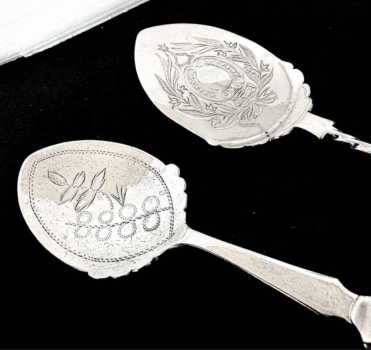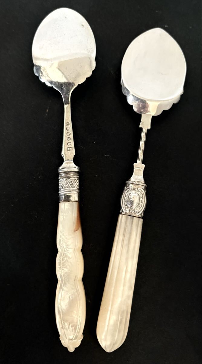 英国アンティーク ジャム/デザート/フルーツ 白蝶貝スプーン カトラリー2本 純銀カラー シルバーp シェフィールド ビクトリア期1895年SB社
