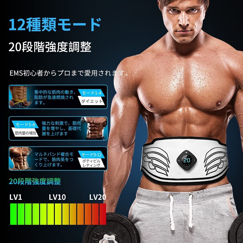 【改良モデル ジェルシート不要】EMS 腹筋ベルト 腹筋パッド 12種類モード