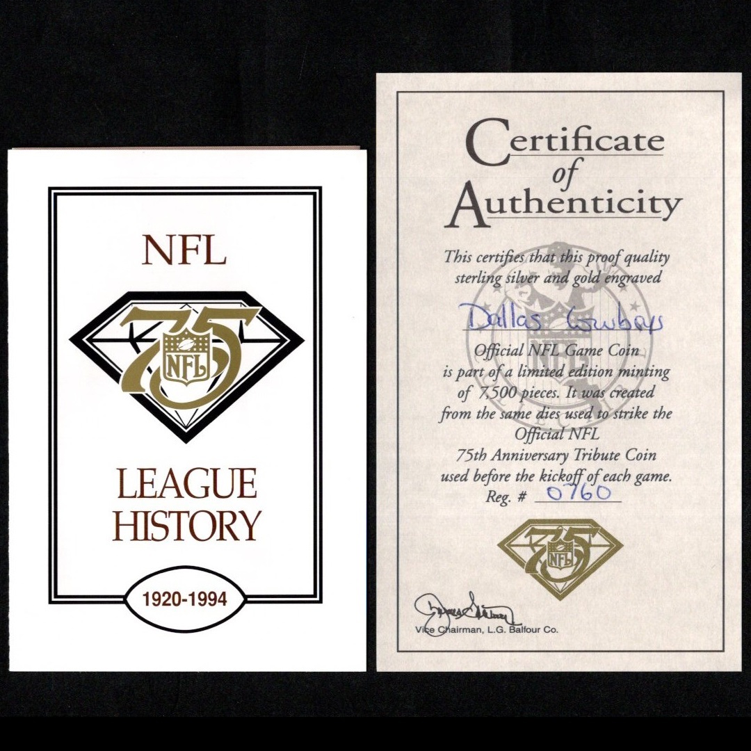 NFL ナショナル・フットボール・リーグ OFFICIAL GAME COIN 公式ゲームコイン 75周年記念コイン Dallas Cowboys 1960年 シリアル番号入