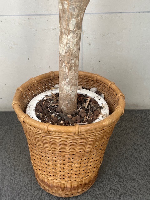 鉢は白のプラスチック鉢に籐の編み込みの鉢カバーとなります。