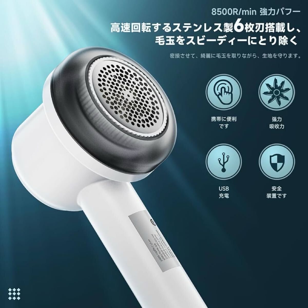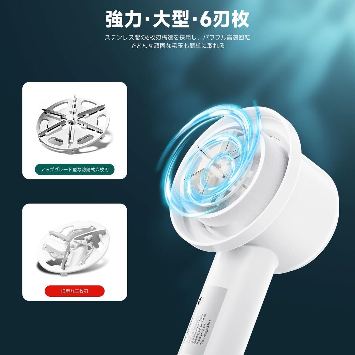【高速回転&6 枚刃】毛玉取り器は高速回転モーターを搭載し、最大回転速度は 9000rpm / 分に達します。6 枚刃設計を採用し、優れた切断性能により、衣類表面の頑固な毛玉や大量の毛玉を素早く処理できます。日常生活に欠かせない毛玉取り器です。