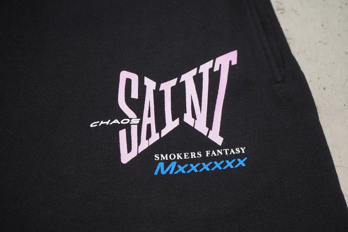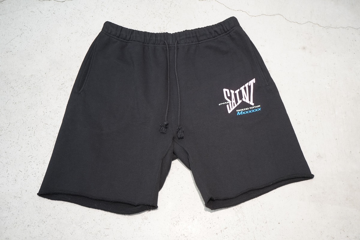美品正規 25SS SAINT MICHAEL セントマイケル SWEAT SHORTS RIBON SAINT スウェット ショーツ ハーフ パンツ SM-HR8-0000-059 黒L831P▲
