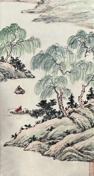 k0209z【模写】中林竹渓「獨釣春江図」掛軸 紙本 山水図 南画家 竹洞の子 江戸時代後期 日本 中国 中国美術