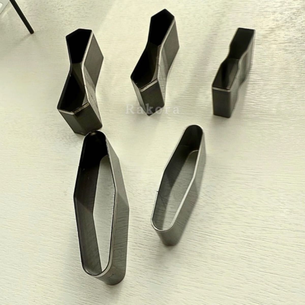 3D感のある立体フォルム、ひねり形、リボン型、台形、角丸長方形など、