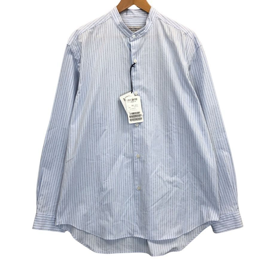 新品同様◆長袖シャツ ジョンスメドレー シャツ ノーカラー バンドカラー 長袖 ストライプ メンズ ブルー系 サイズM【AFB35】
