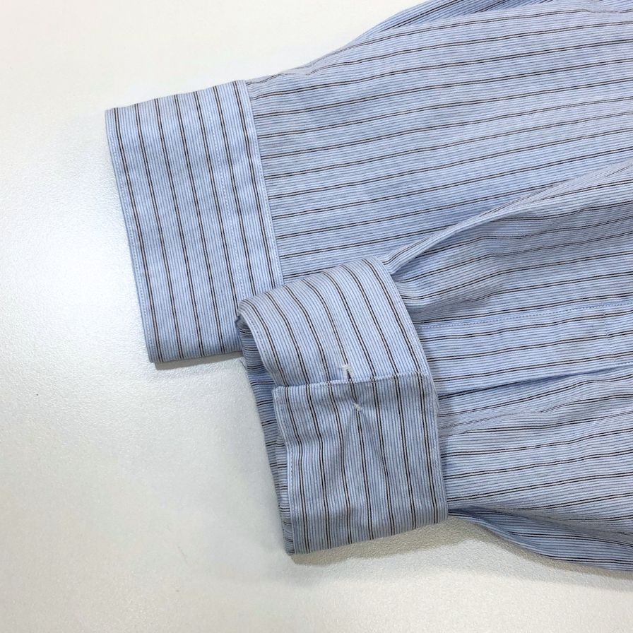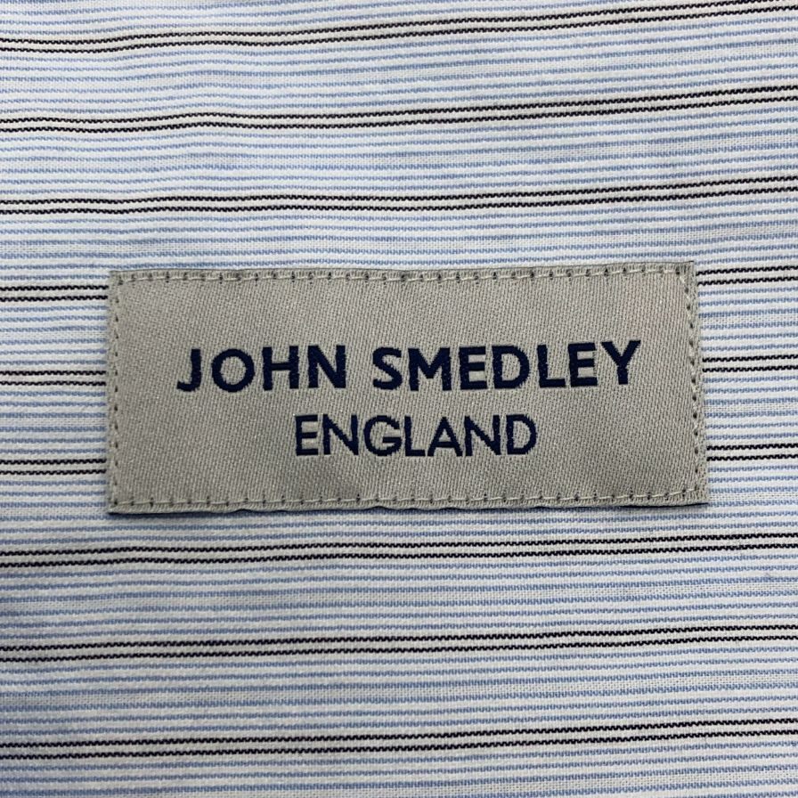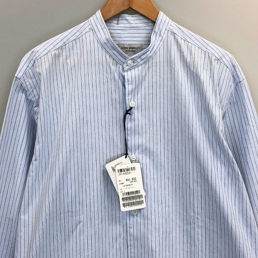 ブランド ジョンスメドレー シャツ ノーカラー バンドカラー 長袖 ストライプ メンズ ブルー系 サイズM JOHN SMEDLEY