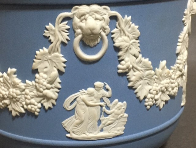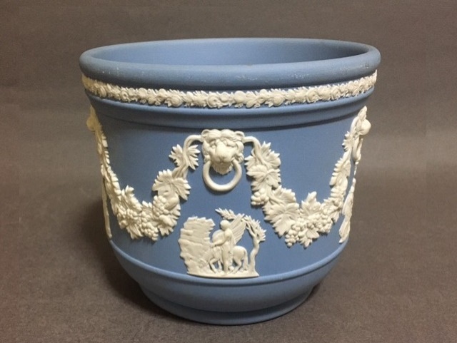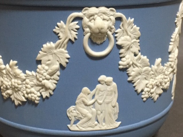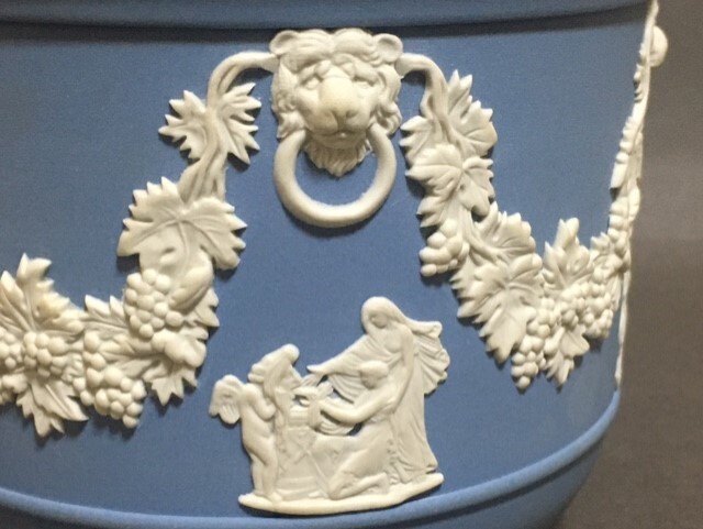★素晴らしいウェッジウッド ジャスパー作品 ライオン頭と輪で飾られたポット 壷★05si