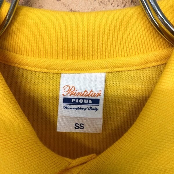 Printstar プリントスター メンズ HOT DOG 両面プリント 鹿の子 半袖ポロシャツ 小さいサイズ SS 黄色