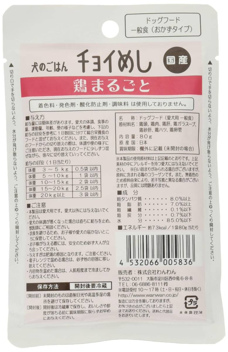 | 商品名 | チョイめし ドッグフード 鶏まるごと 80グラム (x 10) (まとめ買い) |