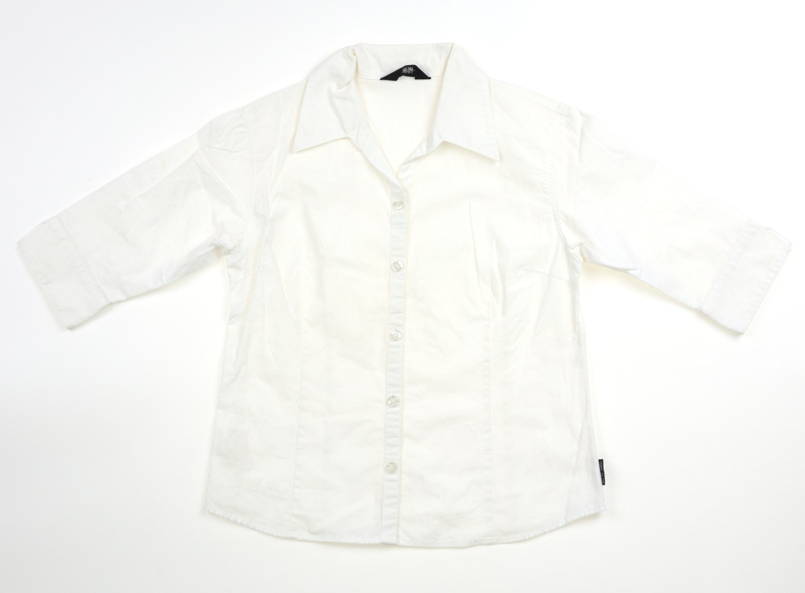 五分袖。薄いシミが袖や前身頃に複数見られます。普段使いにいかがでしょうか。