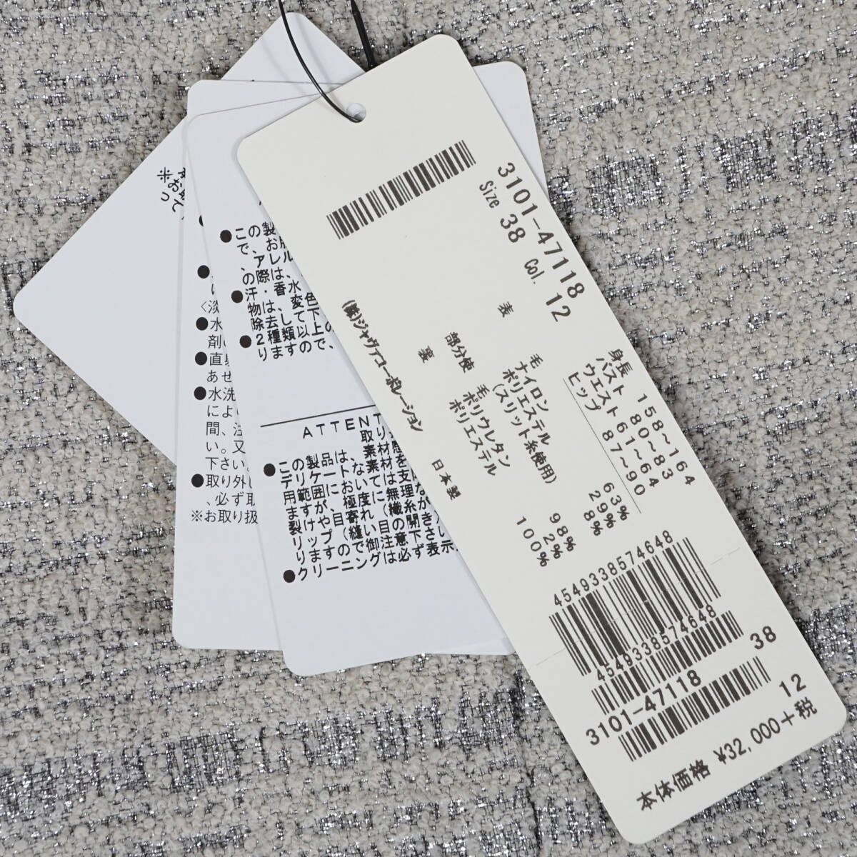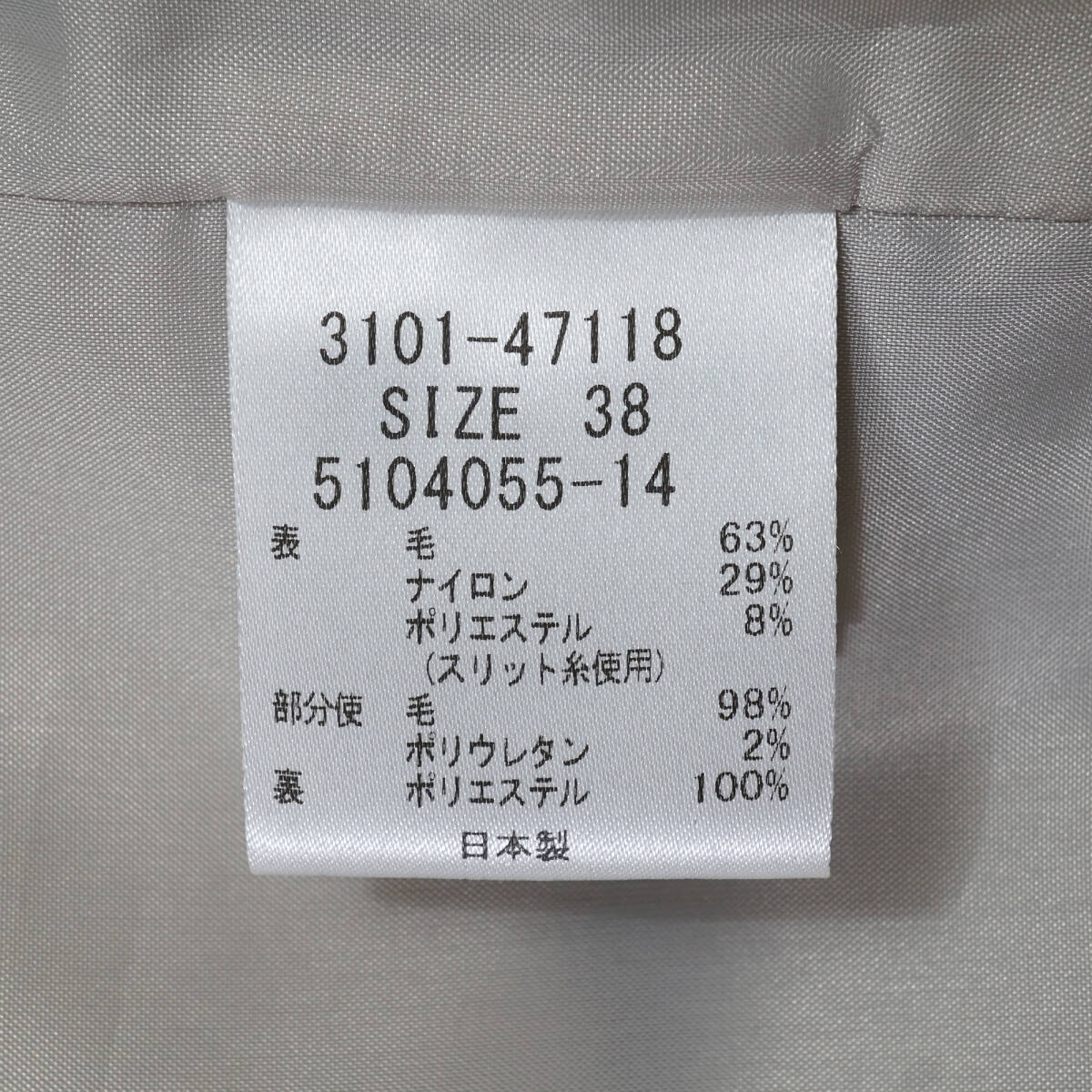 身幅 約45cm、着丈 外側 約69/内側 約90cm。身長 158-164、バスト 80-83、ウエスト 61-64、ヒップ 87-90の方向け。表 毛63% ナイロン29% ポリエステル8%(スリット糸使用)、部分使 毛98% ポリウレタン2%、裏 ポリエステル100%。日本製。