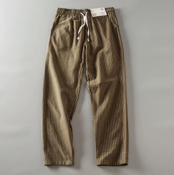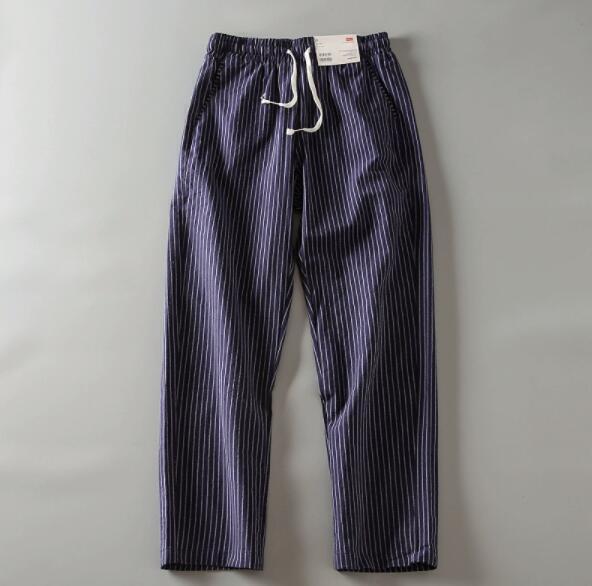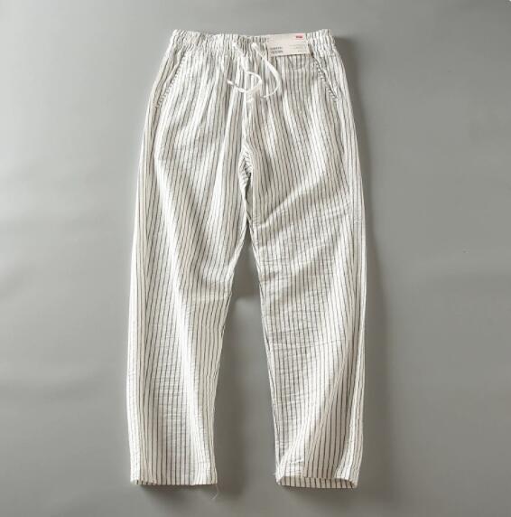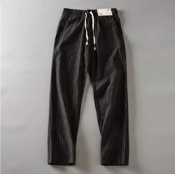 新品大人気 シアサッカー コットン リネン スラックス 先染め ストライプ サマー 春夏 綿麻 イージー パンツ メンズ テーパード黒