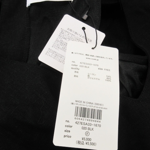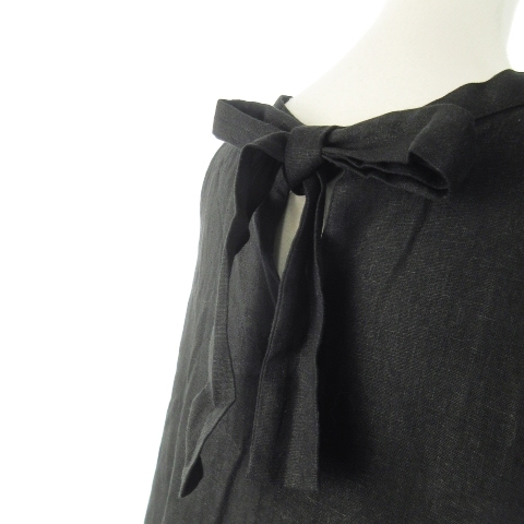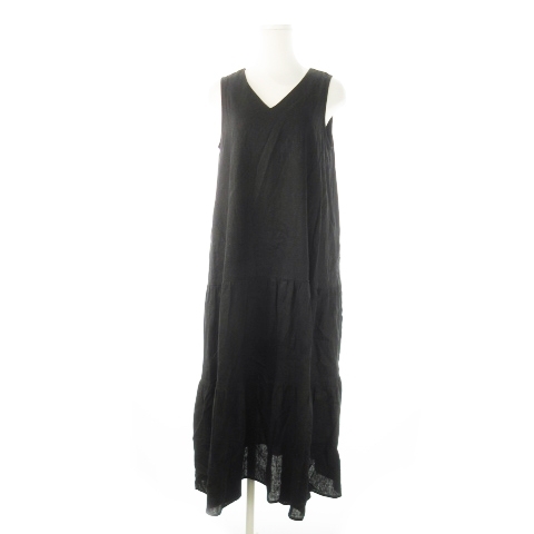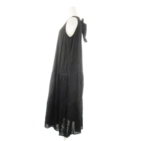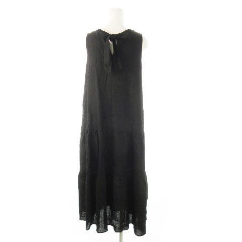 未使用品 ロデオクラウンズ Rodeo Crowns リネンブレンドワンピース ロング Vネック ノースリーブ バックリボン ティアード F 黒