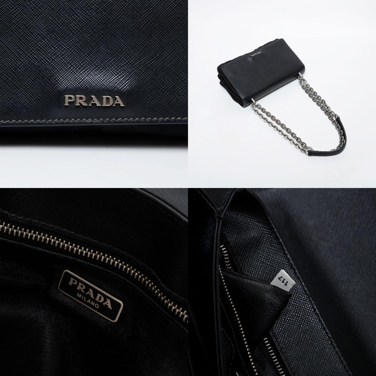 極美品 PRADA ナイロン サフィアーノ レザー チェーン ショルダーバッグ ブラック