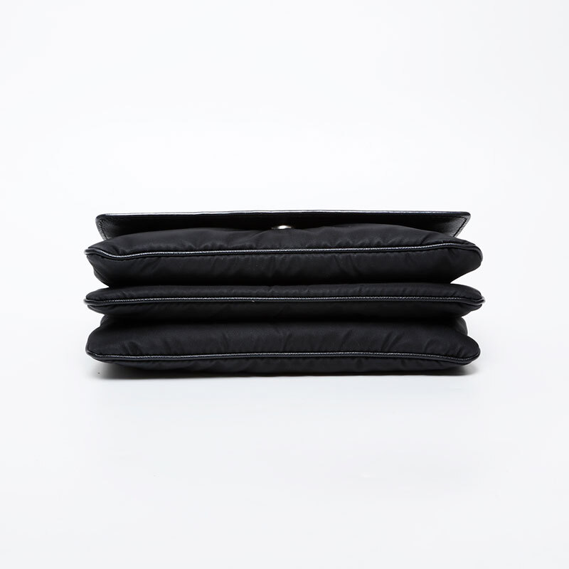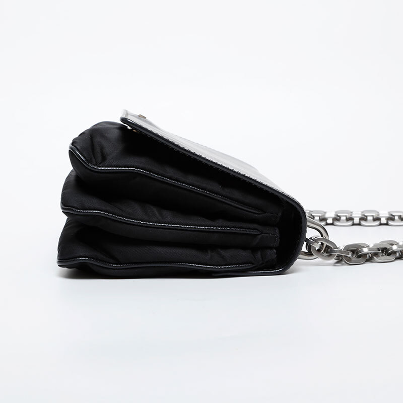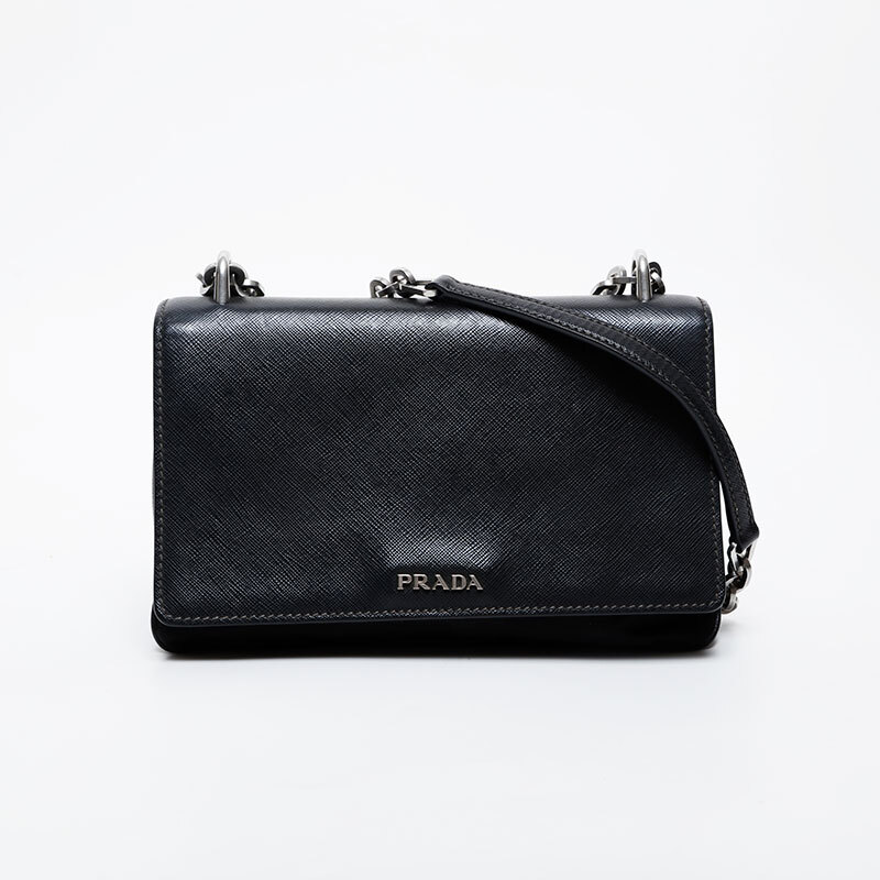プラダ PRADA ショルダーバッグ ナイロン サフィアーノ レザー チェーン ブラック