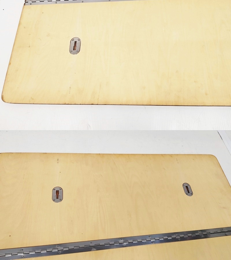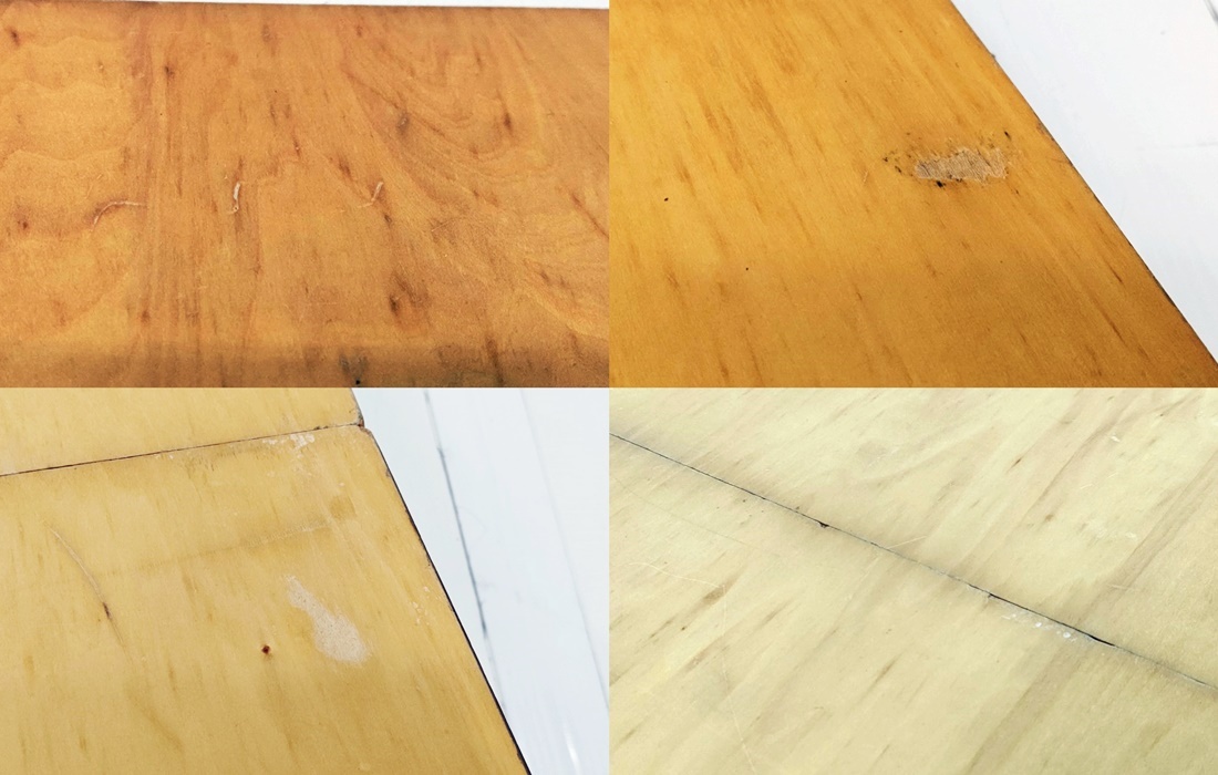・天板の傷や剥がれなども見られ、収納ケースの穴開きなど破れなど全体的に傷、汚れ、擦れが多数ございます。