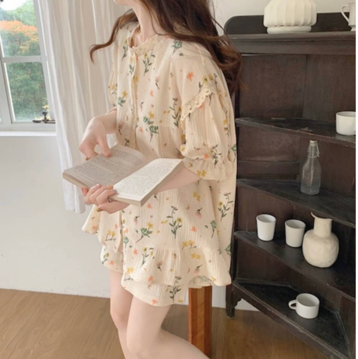 花柄でおしゃれ、気持良い生地のルームウェアがとっても可愛いく女の子らしいのがポイント!
