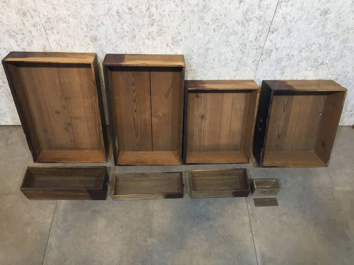 商品説明 | 商品説明 管理番号NAK-0708-1510 ≪サイズ≫ 本体寸法:幅58.5㎝×奥行37.1㎝×高さ60.8㎝ 重量:16.3㎏ 引出内寸法:上段52.8㎝×33.5㎝×高さ9.3㎝ 中段53㎝×31.5㎝×高さ11㎝ 左上段39㎝×31.7㎝×高さ11.2㎝ 左下段39㎝×31.7㎝×高さ14㎝ 右上段10.5㎝×34.2㎝×高さ11.2㎝ 扉内上段10.7㎝×31.7㎝×高さ4.5㎝ 下段10.7㎝×26㎝×高さ7㎝ 扉下段奥の隠し箱内寸法4㎝×10.3㎝×高さ6㎝ ※寸法は多少の誤差が有ります。 ☆時代を思わせるレトロ感あふれる隠し箱付きの箪笥ですので、 店舗や古民家のディスプレイや小物収納に如何でしょうか。 また、舞台セットの小道具としても時代を思わせる風合いある和箪笥です。 引出しの鍵は付属無しで、右下引出しの一か所の取手リングが欠損して 簡易代用品リングが付いていますので気になる方は入札をお控えください。 古いですので、傷や汚れは有りますので気になる方は入札をお控えください。 発送時はレトロ感保持の為、簡単刷毛履き清掃での発送となります。 ☆注意事項をよくお読みください。 送料 佐川急便 飛脚ラージサイズ宅配便 サイズ170 信越発 ※宅配サイズ及び信越発を確認後、下記URLから送料をご確認ください。 https://www.sagawa-exp.co.jp/send/fare/list/sagawa_faretable/faretable-5.html#ft01 注意事項 ☆経年によりやや傷や汚れがあります。 ☆時代物中古品ですので、梱包を剥がす際は十分注意してください。 ★商品の発送は佐川急便㈱になります。 ゴールデンウイーク、お盆、年末年始の発送はできません。 ご迷惑をお掛け致しますが、ご容赦願います。 ☆この商品は中古品ですので写真のみにてご判断ください。 (PC等や環境設定により色調に微妙に違って見える場合が ありますのでご了承下さい。) ☆家電品や可動製品等の動作確認はしておりませんので、 気になる方は入札をご遠慮ください。 ☆発送時には丁寧に梱包にてお送りいたしますが、 発送後の破損等の保証は当方では行っておりませんので ご理解をお願いいたします。 |