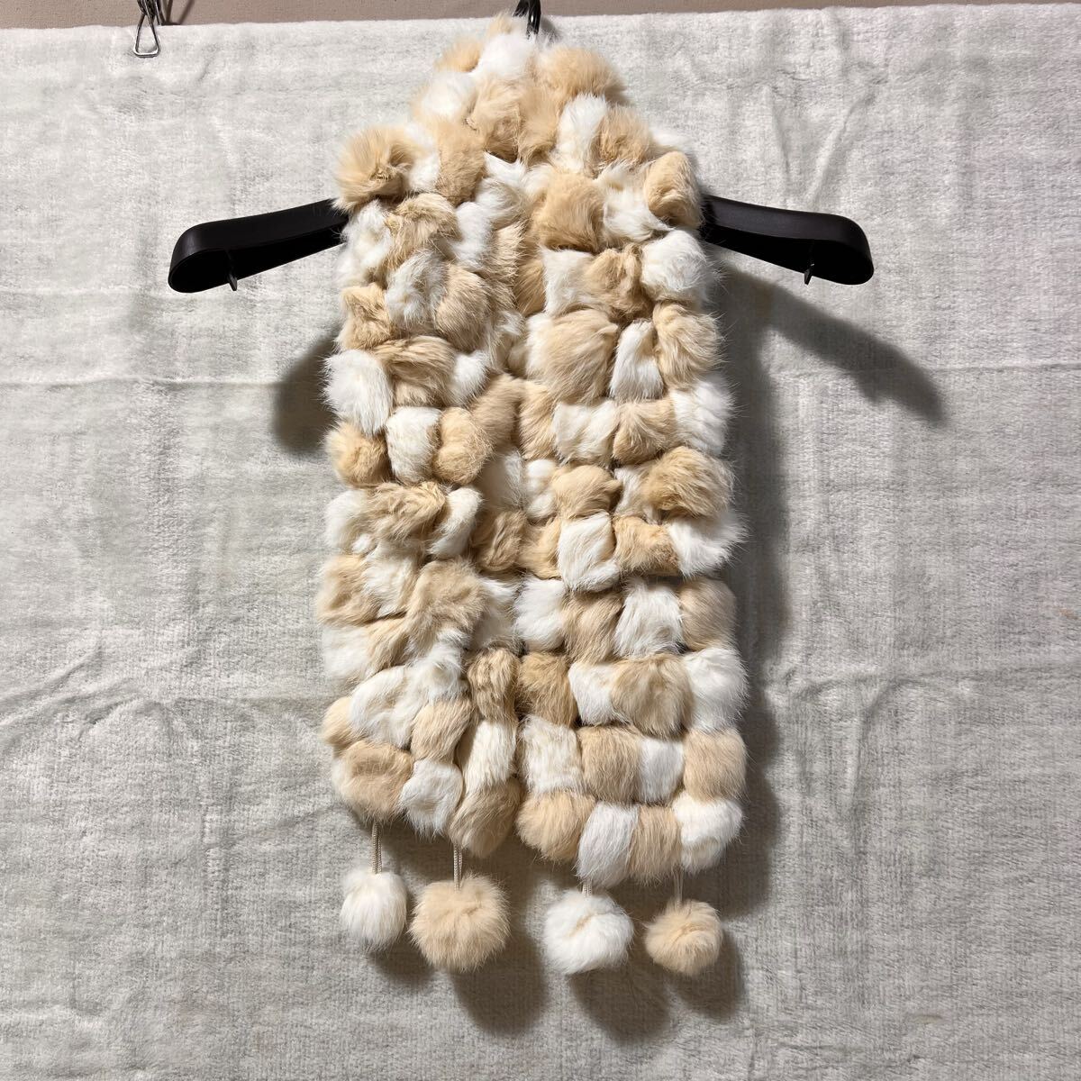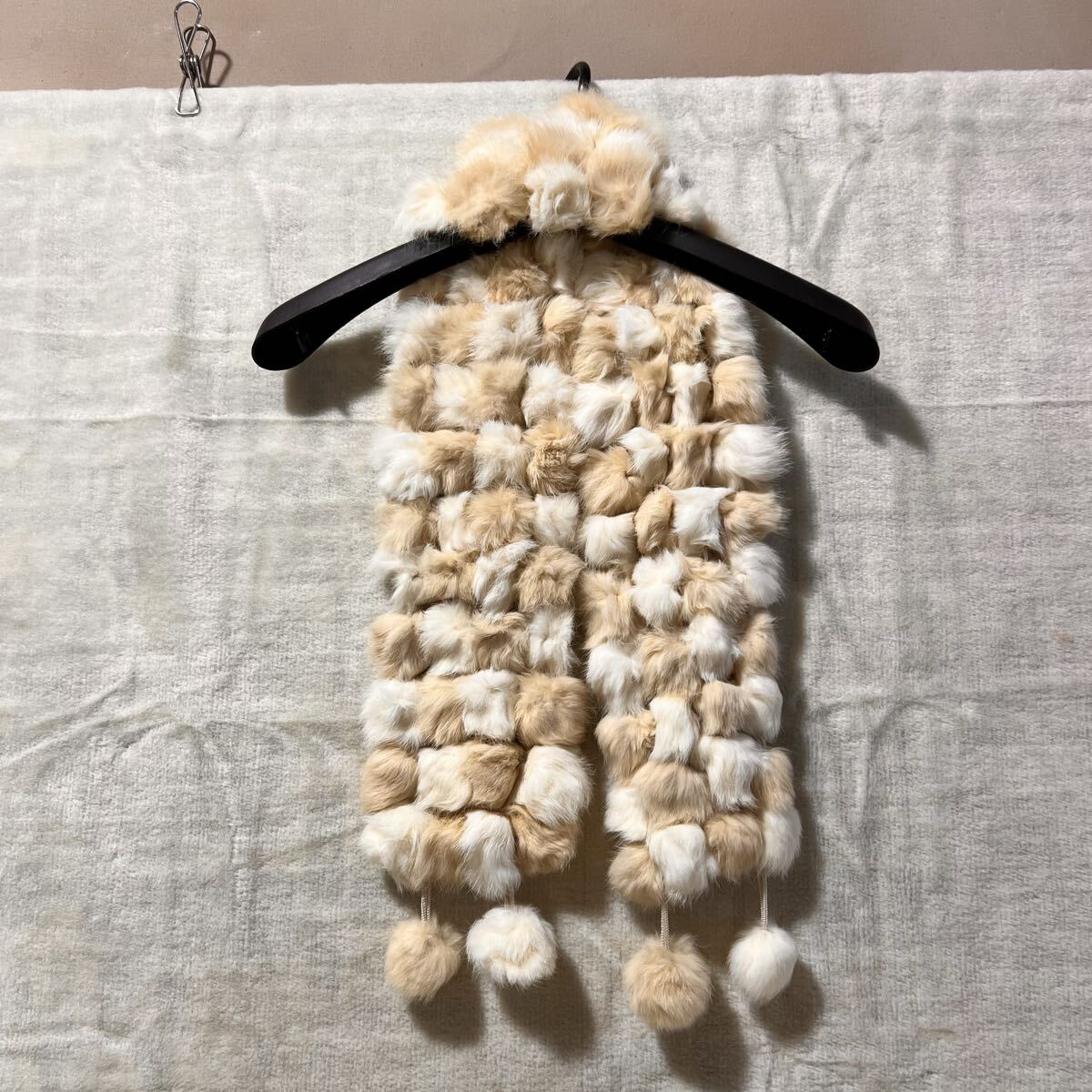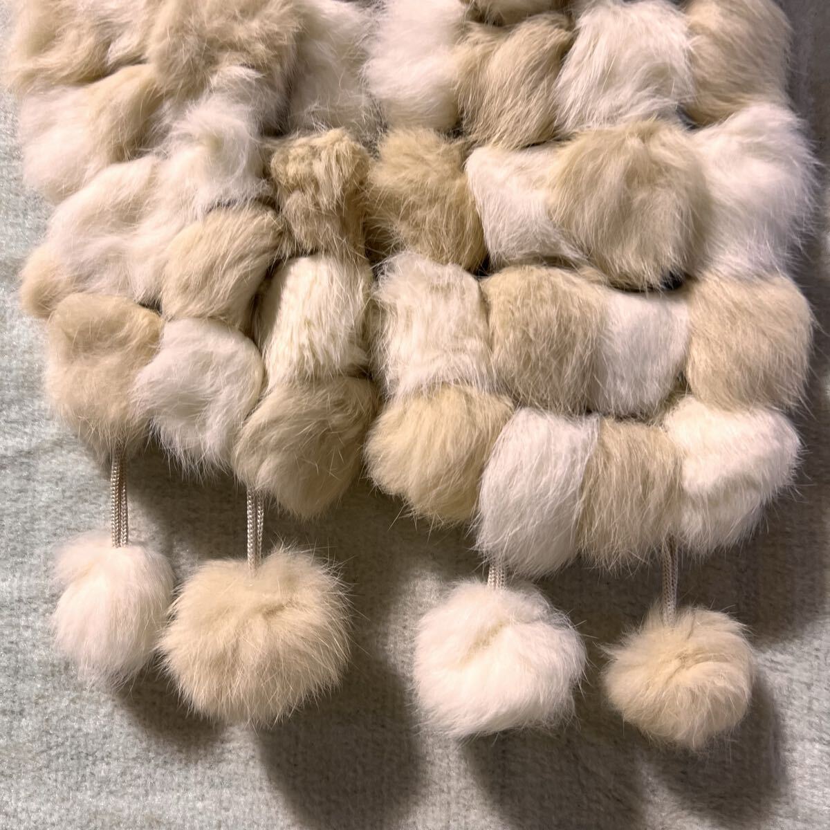 フォックス ポンポンファー マフラー(アイボリー×ベージュ系/タグなし)