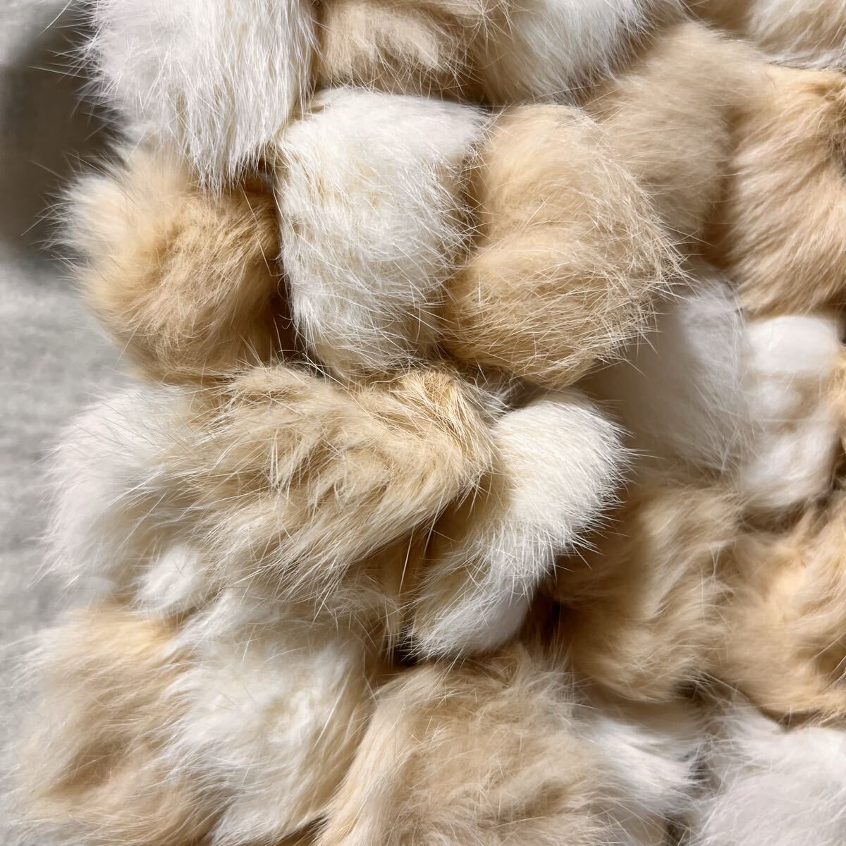 小さなポンポン状のファーを格子状に連ねた軽量マフラー