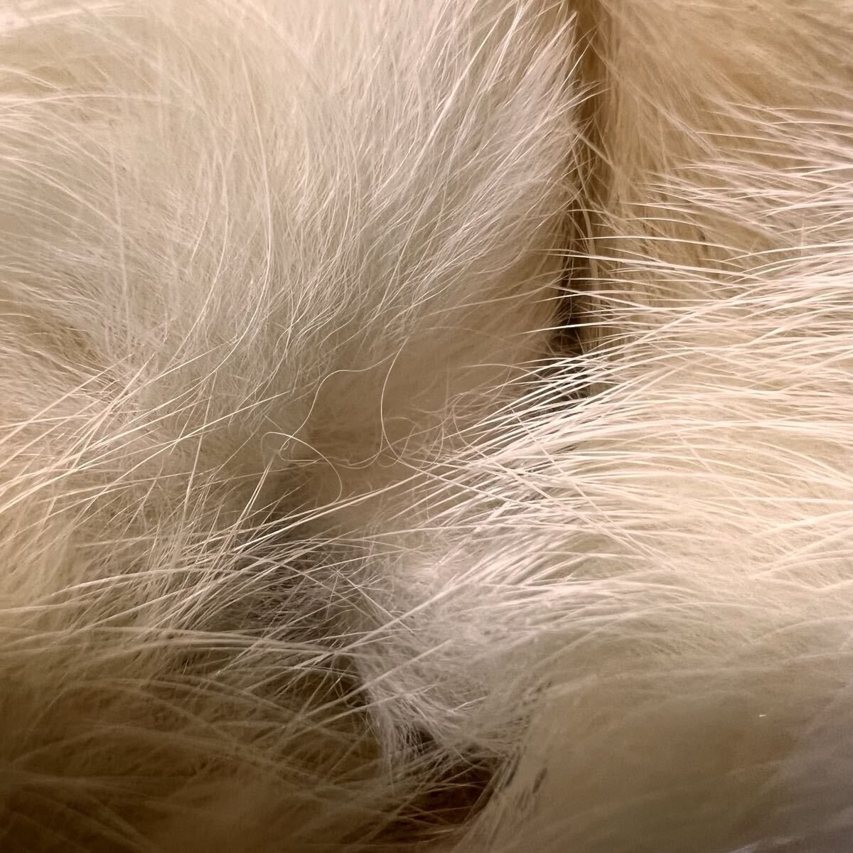 天然毛皮特有のわずかな毛抜けや毛流れの乱れあり