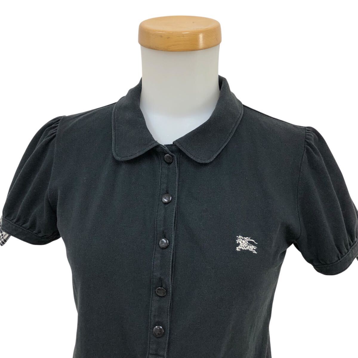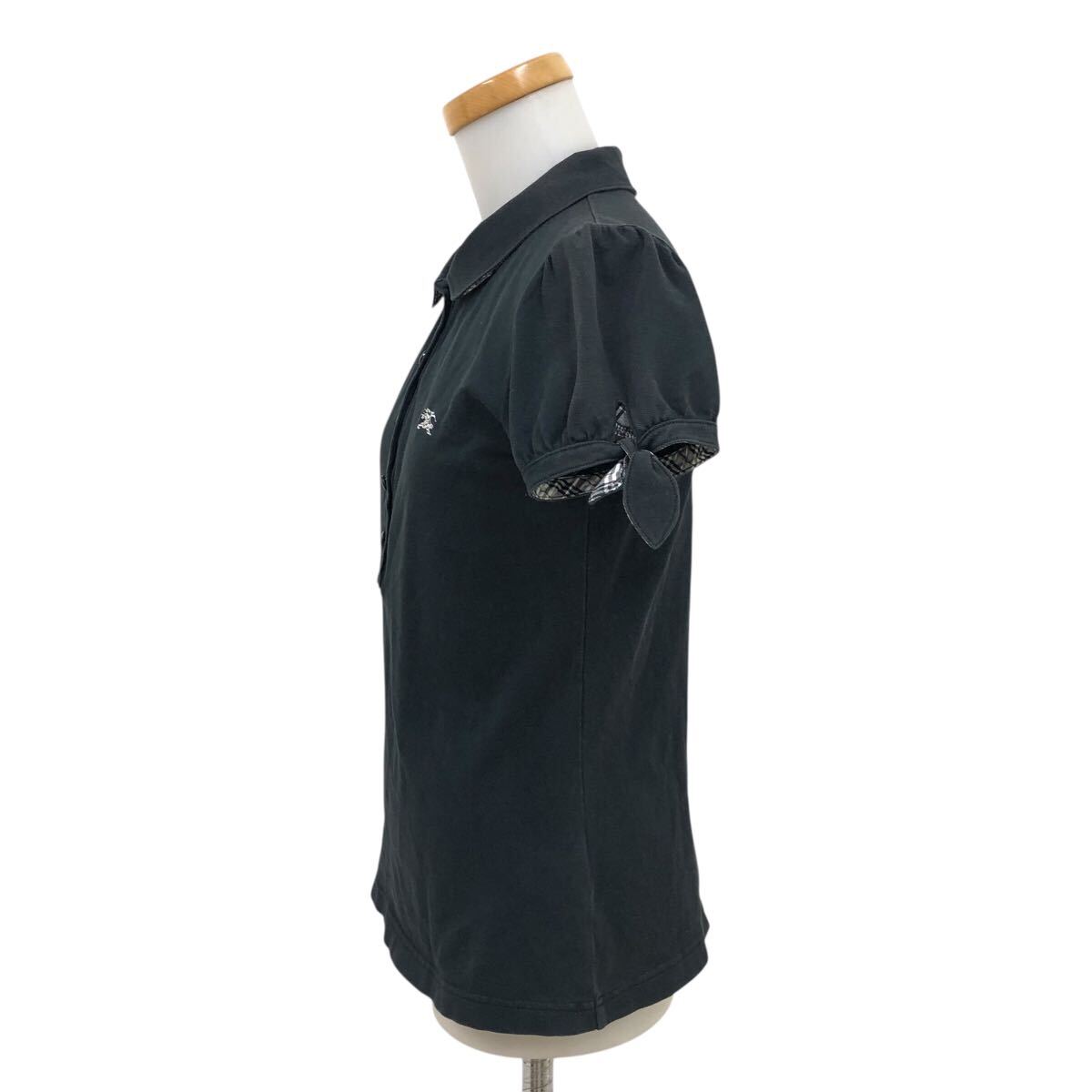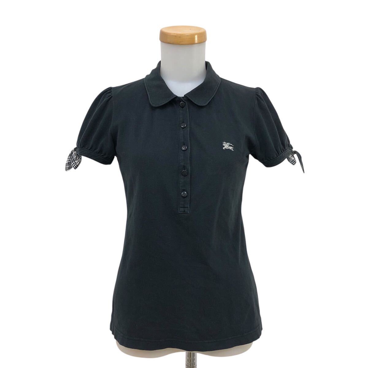 8Nm319-47 BURBERRY BLUE LABEL バーバリーブルーレーベル 半袖 ポロシャツ シャツ トップス カットソー ブラック 黒 レディース 38