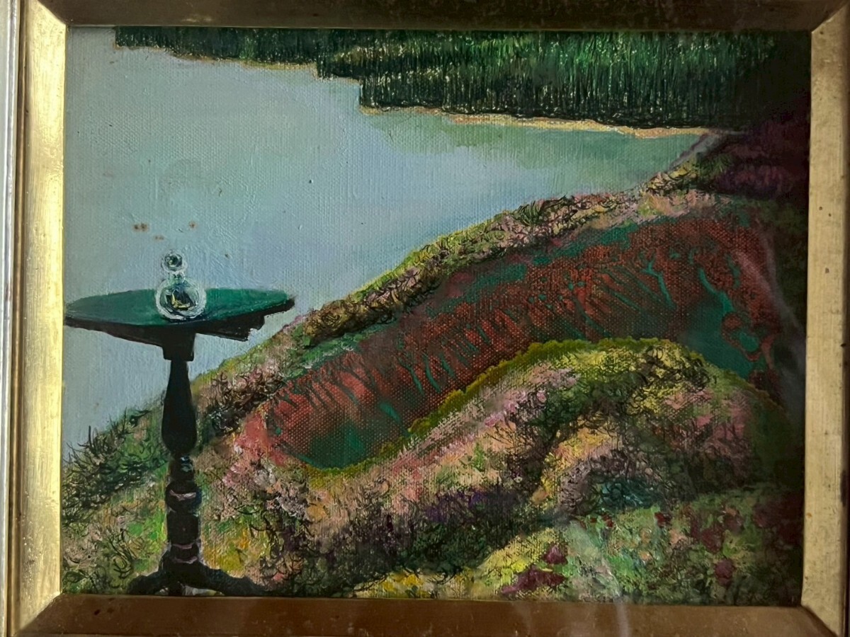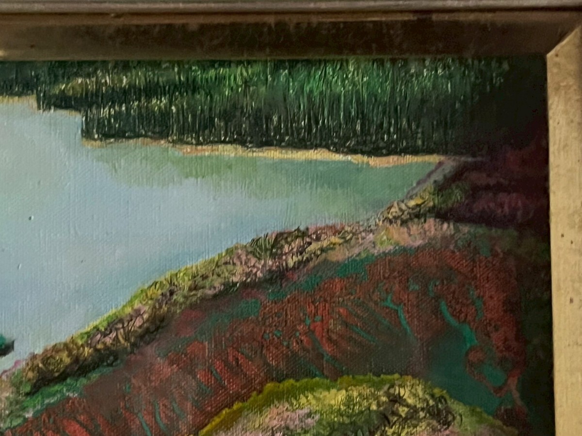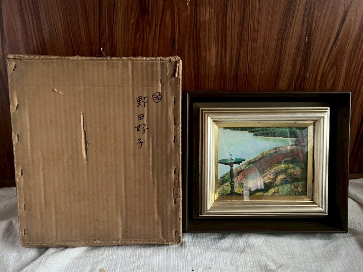 真作 野田好子「湖」油彩画 油絵 絵画 風景画 額装 サインあり