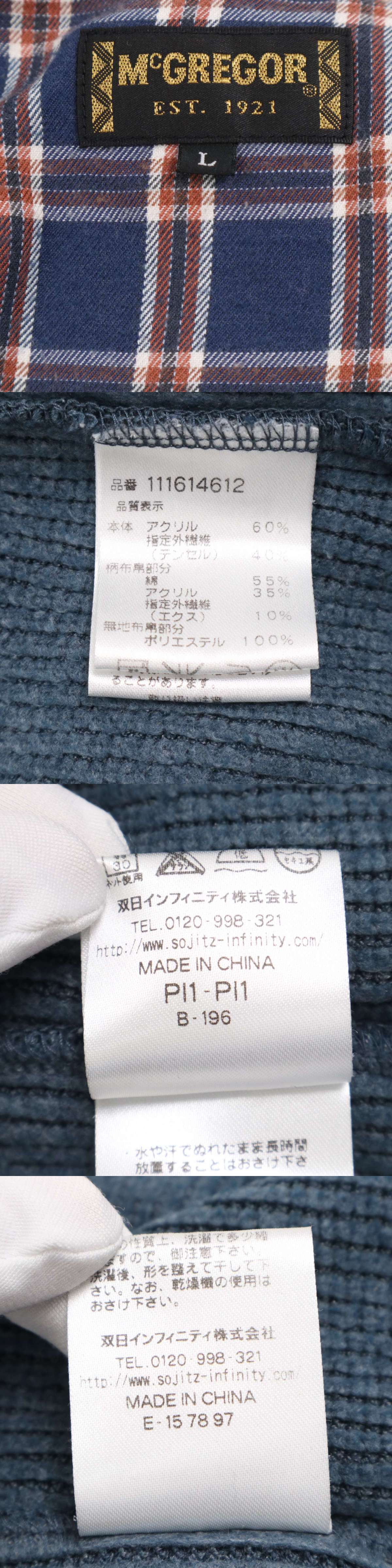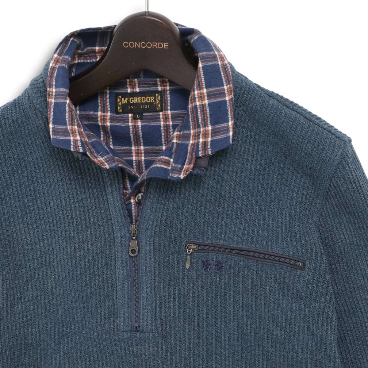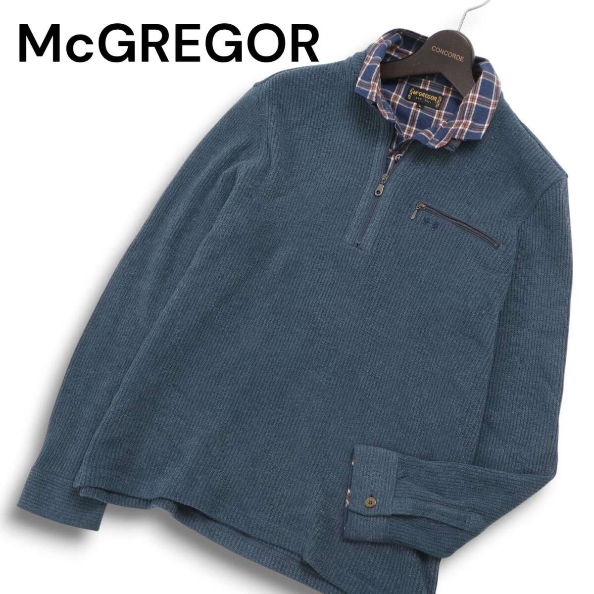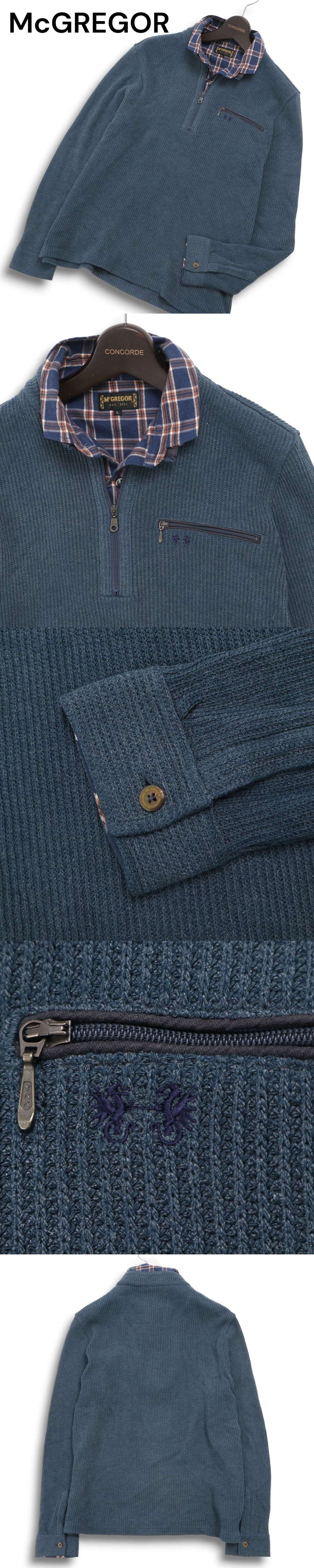 McGREGOR マクレガー 秋冬★ ロゴ刺繍 長袖 襟チェック柄 ハーフジップ ニット ポロシャツ Sz.L メンズ