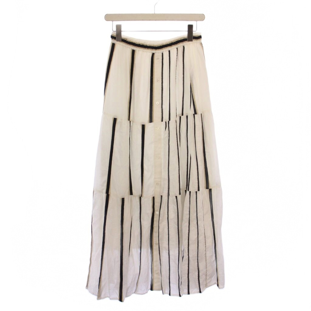 ダイアグラム グレースコンチネンタル Diagram GRACE CONTINENTAL ストライプティアードスカート ロング シルク 36 白 黒 レディース