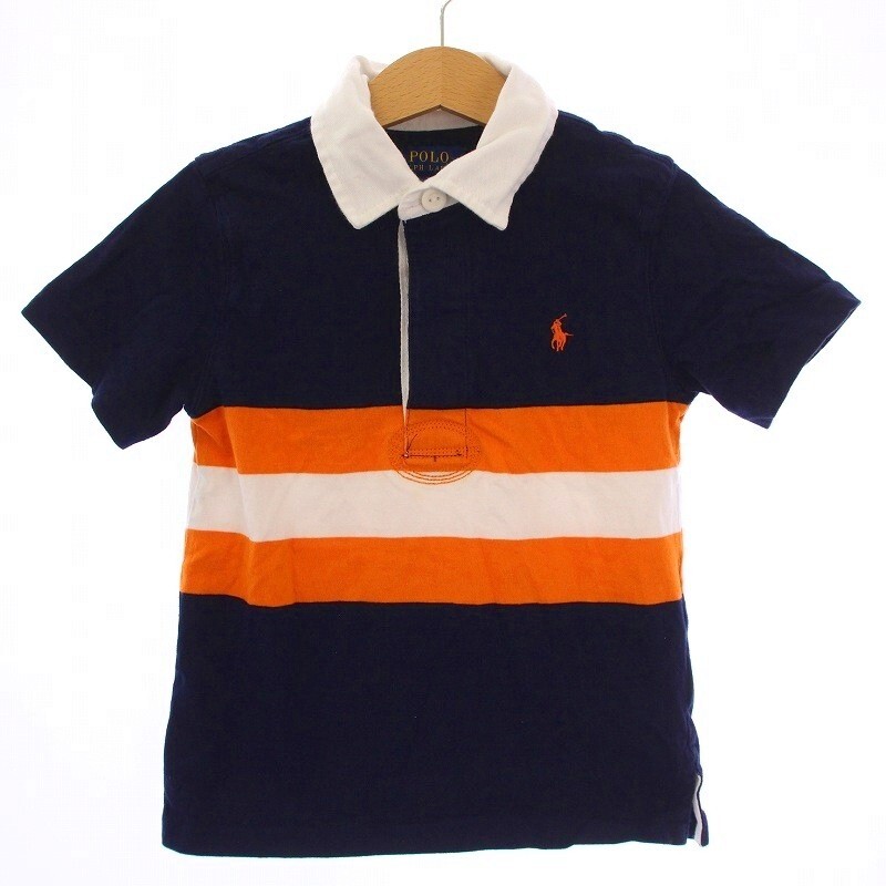 ポロ ラルフローレン POLO RALPH LAUREN ポロシャツ 半袖 ボーダー柄 ロゴ刺繍 4 紺 オレンジ /BM キッズ