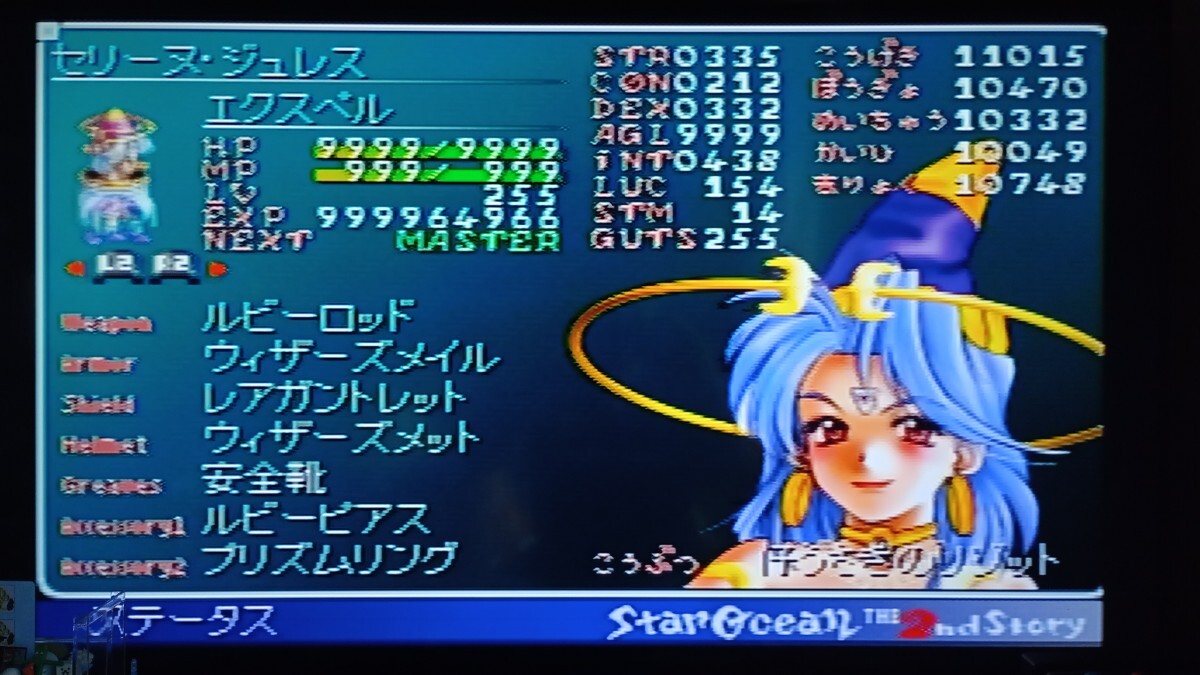 名作PS1版スターオーシャン セカンドストーリーのやり込みセーブデータとLV99でスタート出来るチョコボの不思議ダンジョンのおまけセーブデータをセットにしたPS1用メモリーカード1個の販売です。