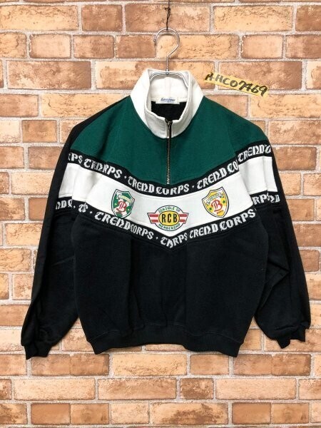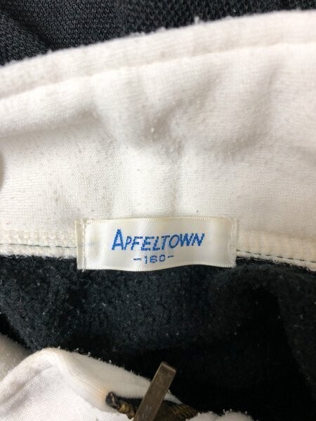 APFELTOWN キッズ 切替 ハーフジップ プルオーバー カットソー 160 エンブレムプリント 黒 アクリルポリエステル