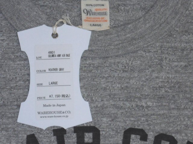 25 ウエアハウス 4601 COLUMBIA ARMY AIR BASE クルー 杢グレー L 半袖 Tシャツ