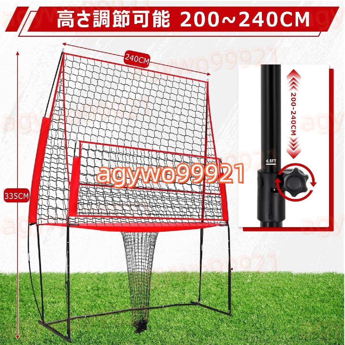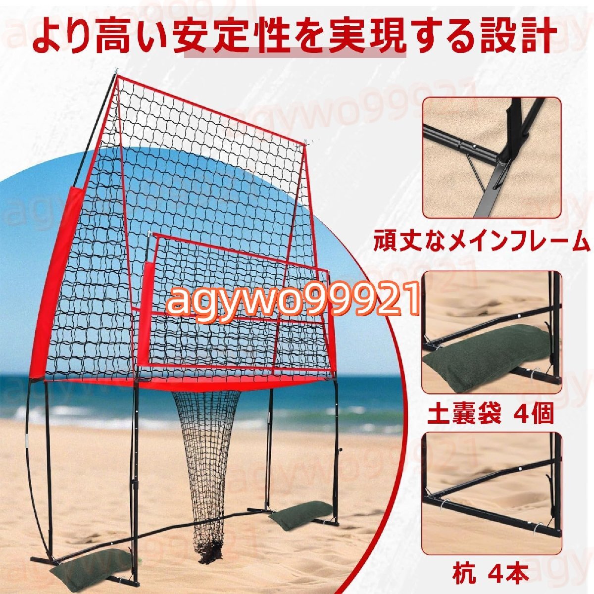 【使い勝手の良さ】高さ調節機能(200~240cm)で、ユーザーの身長や練習内容に合わせてカスタマイズ。転倒防止用グラウンドネイルや土嚢袋(4 個付属)で、ビーチや芝生など不安定な場所でもしっかり固定。設置から片付けまで手軽に作業可能